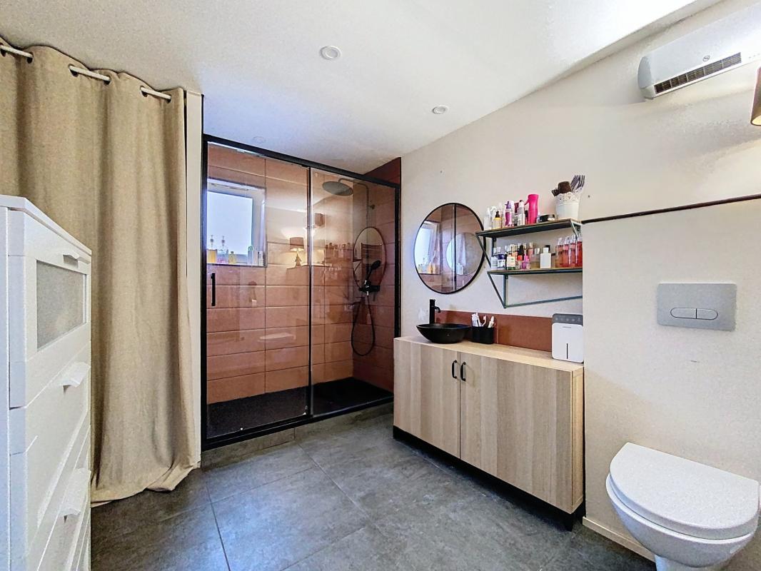 Au premier étage, un palier dessert une grande chambre avec dressing ainsi qu'une autre chambre.