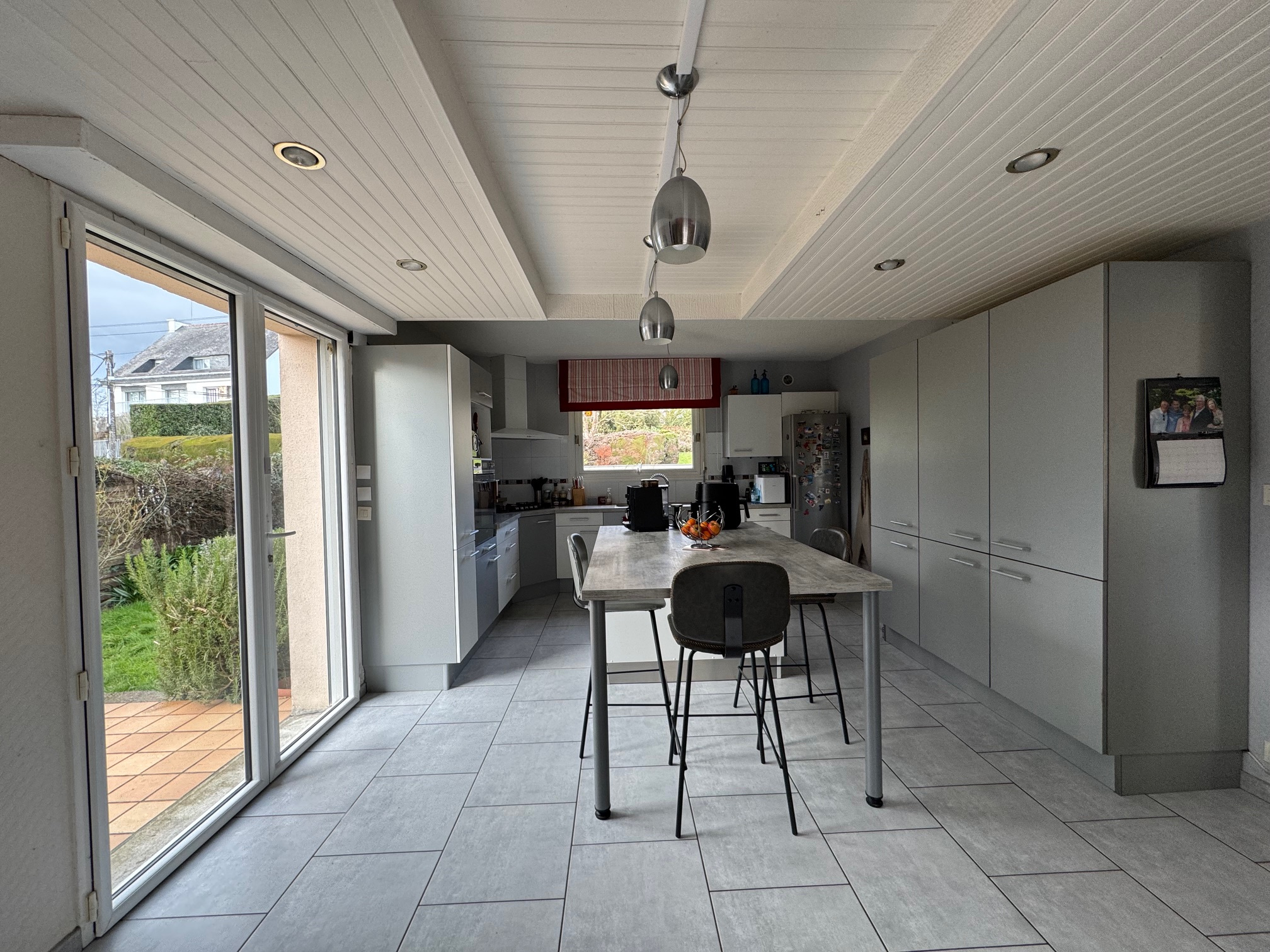 Possibilité de vie de plain pied avec une grande pièce de vie comprenant une cuisine aménagée et équipée, deux chambres, 2 WC (dont un avec un lave mains), une salle d'eau et un dressing.