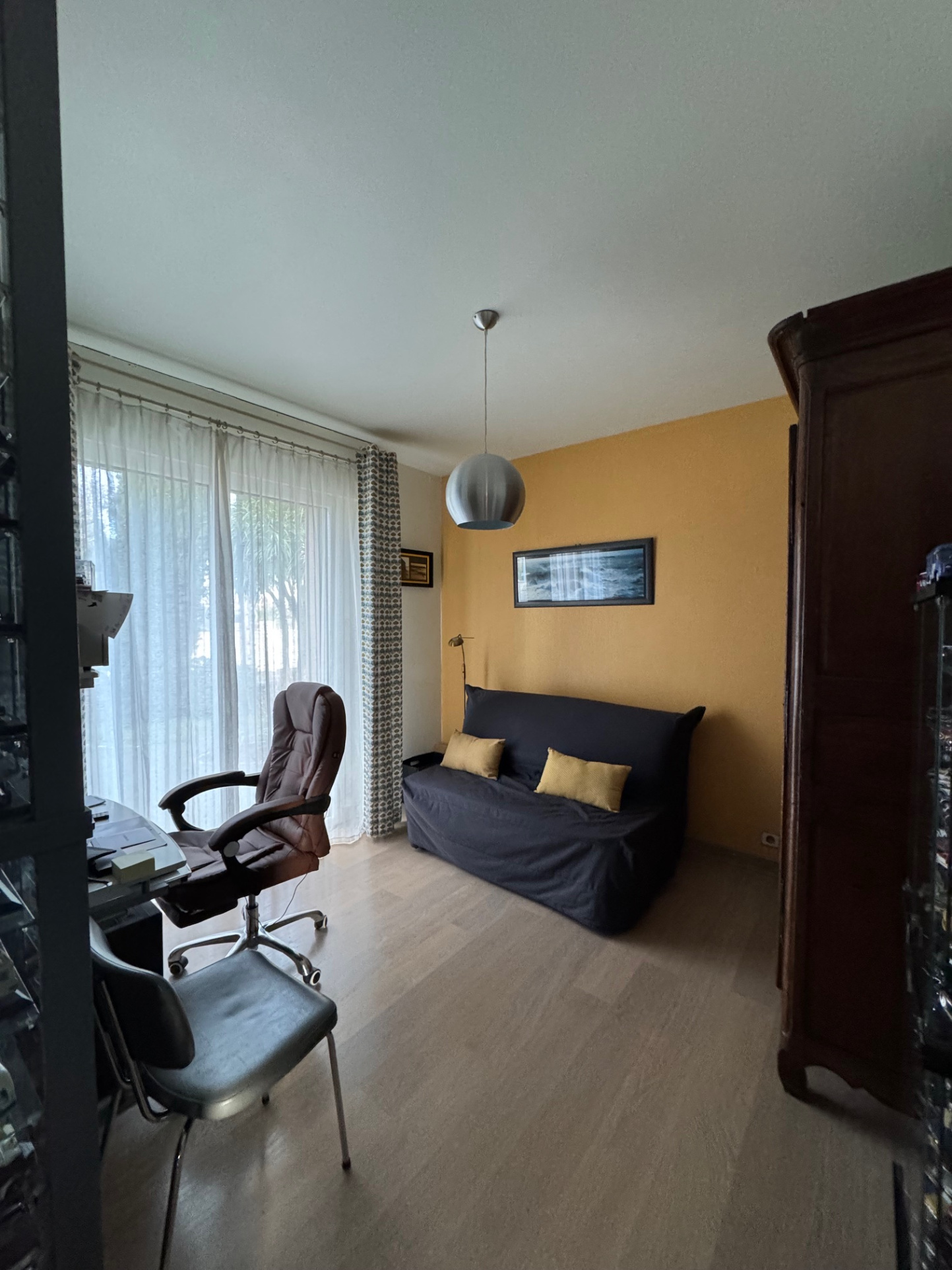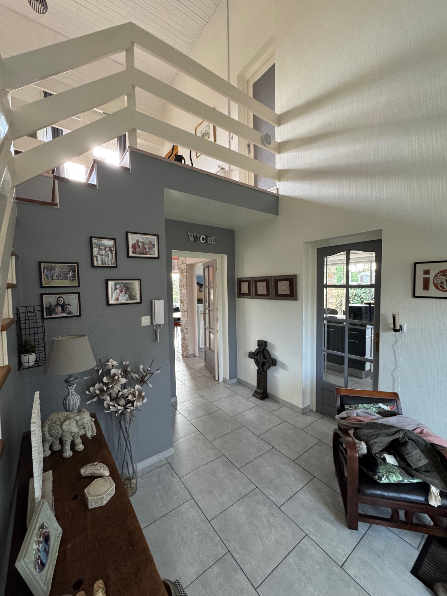 A l'étage : une grand mezzanine sur terrasse dessert 2 chambres, un bureau, une salle d'eau avec un WC.