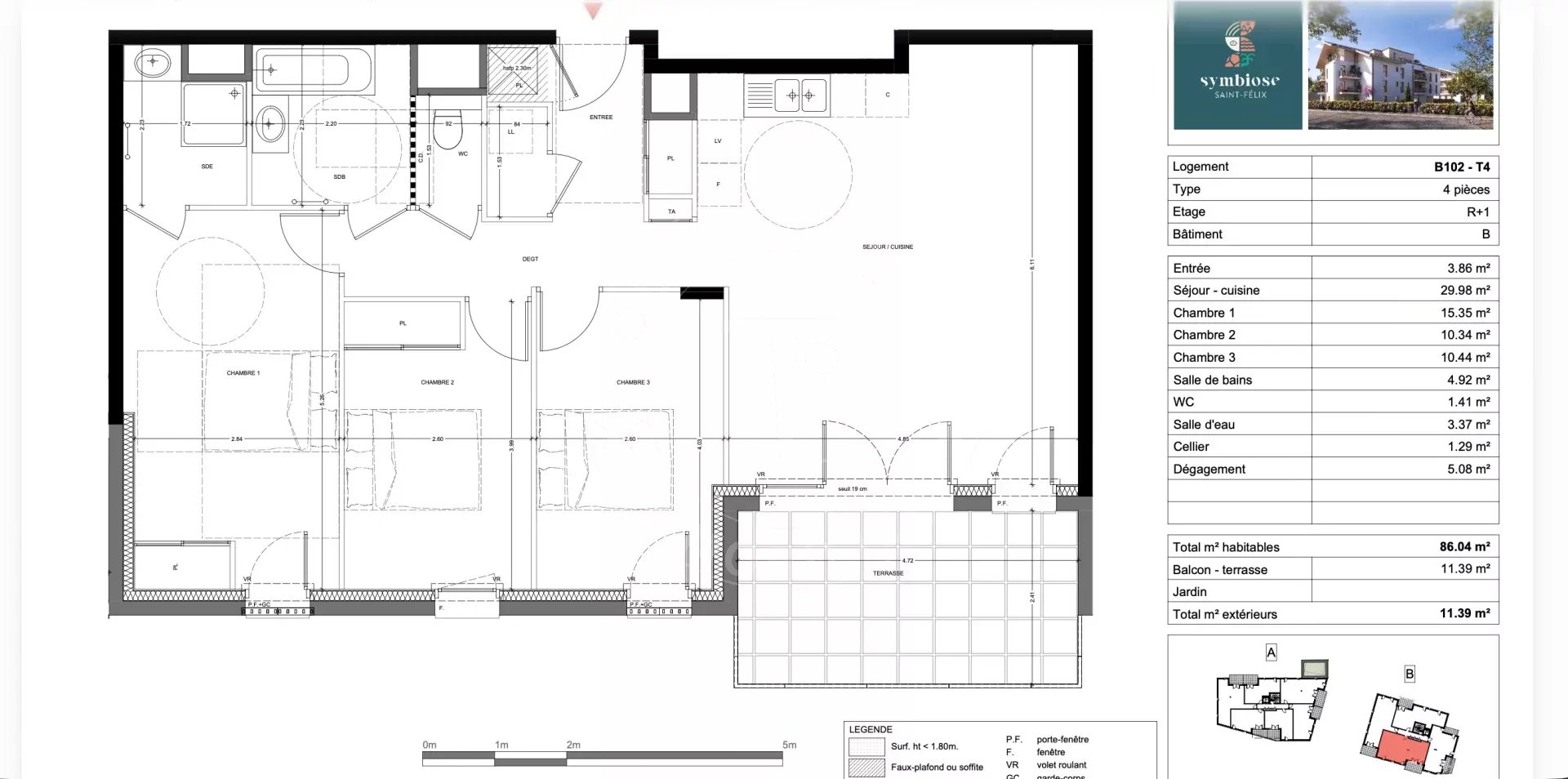 À Saint-Félix, au sein de la résidence contemporaine Symbiose, appartement 4 pièces situé au 1er étage.