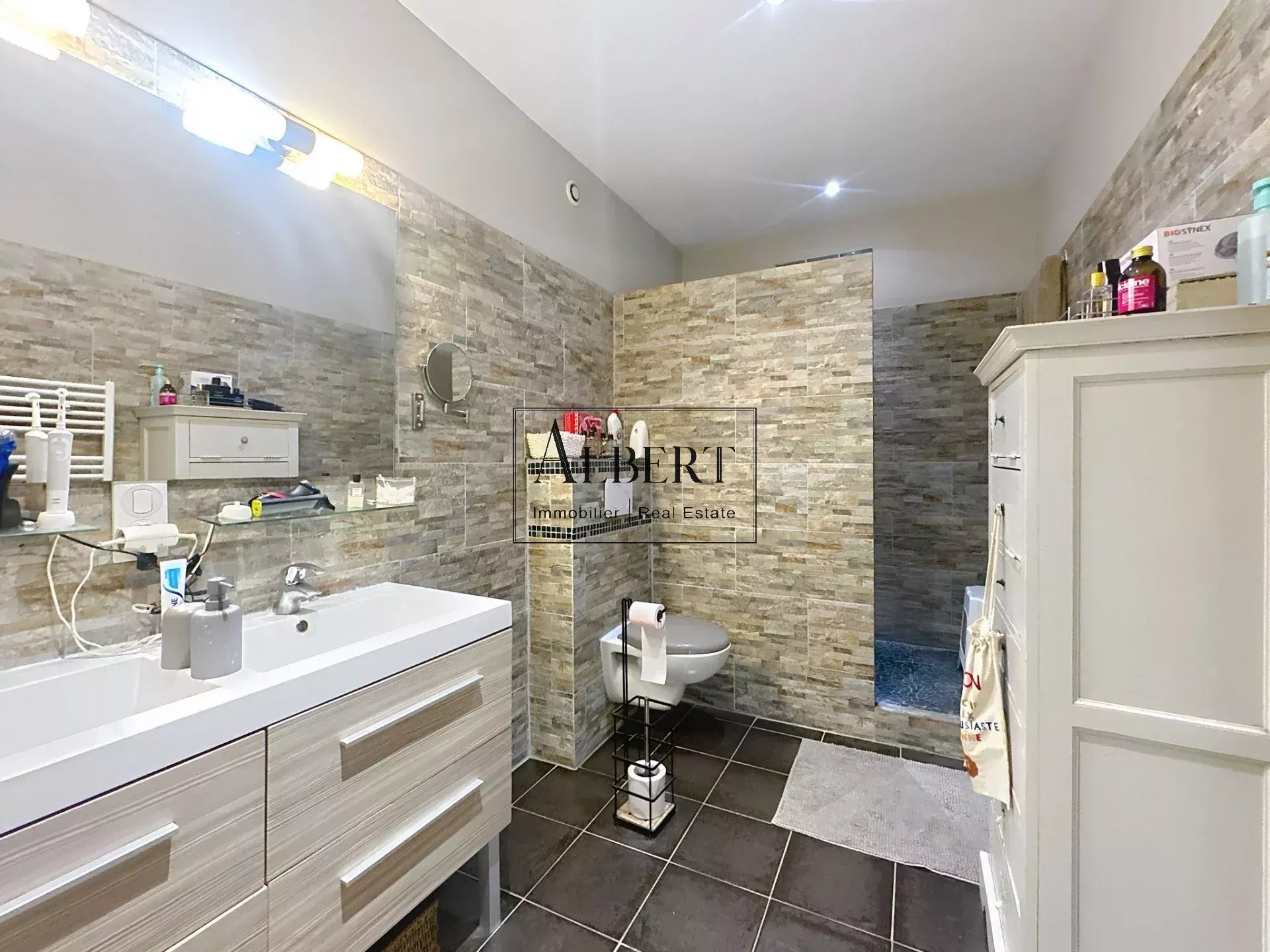 De nombreux rangements et un coin buanderie complètent le confort de ce bien, tandis qu’un petit bureau constitue un espace idéal pour le télétravail ou les activités créatives.