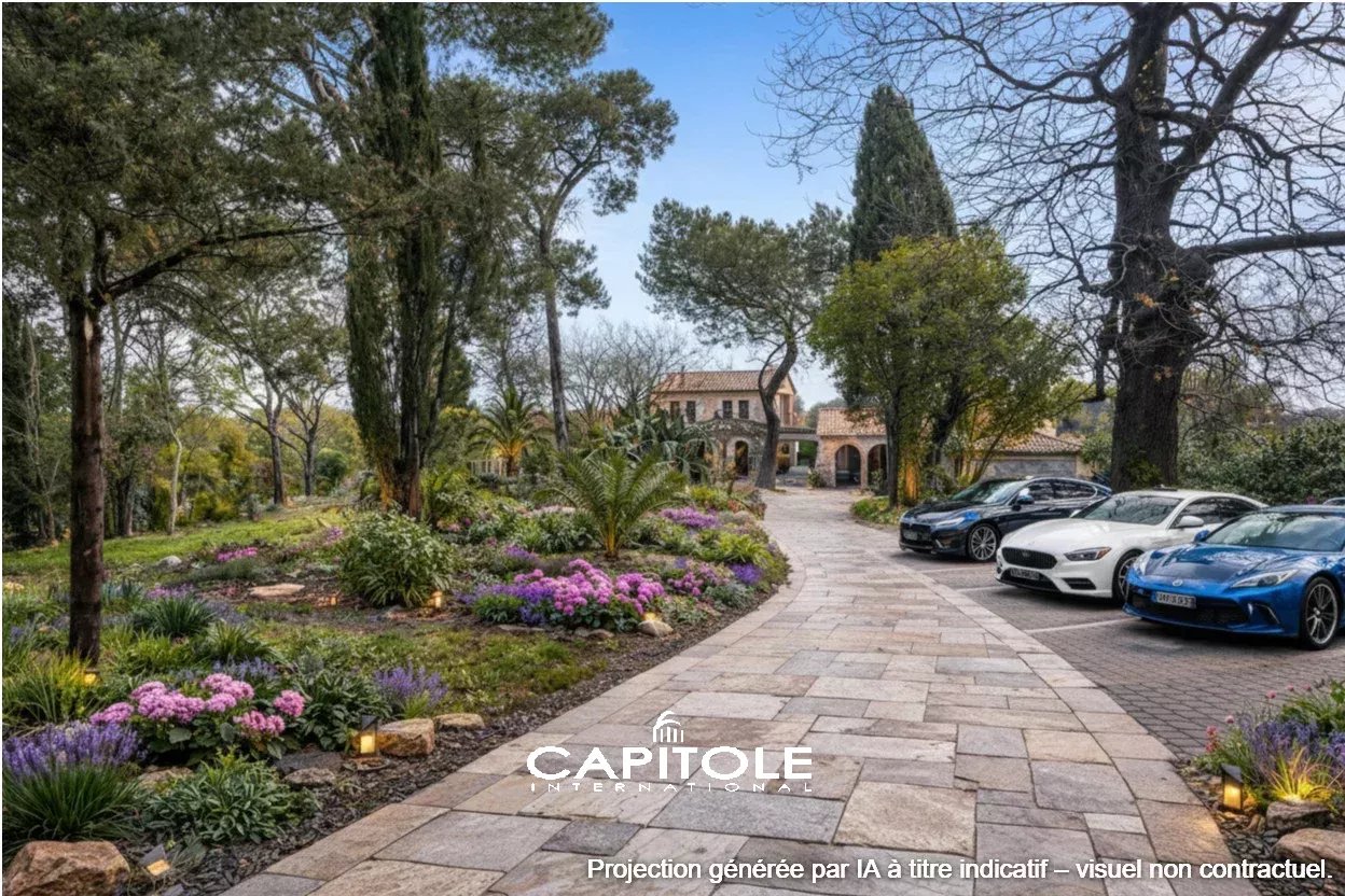 Antibes - (En cours de rénovation, livrée entièrement rénovée) - Implantée dans l’un des secteurs résidentiels les plus convoités d’Antibes, cette villa d’exception se distingue par son caractère confidentiel et son raffinement absolu. Au cœur d’un parc paysager de 3 500 m², elle offre 227 m² de surfaces élégamment pensées, à proximité du littoral, du Cap d’Antibes, de Cannes et de l’aéroport international de Nice.
