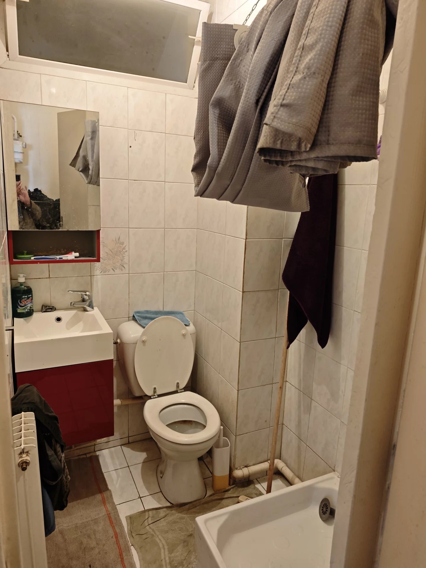 Appartement 2 pièces, entrée, salle d'eau avec WC, salon, cuisine, chambre et cave.
