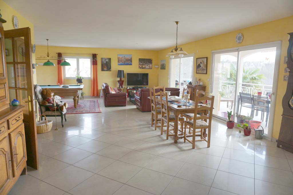 DIGOIN, belle et grande maison de 226 m2 habitables, comprenant de plain-pied : entrée, vaste pièce de vie de 90 m2 environ très lumineuse avec cuisine aménagée et équipée, salle à manger/salon, espace de jeux avec billard et accès à une agréable terrasse couverte qui offre une jolie vue dégagée sur la campagne. L'espace nuit se compose d'un couloir distribuant trois chambres dont deux avec placard, salle d'eau, WC indépendant et un second WC avec lave-main à l'entrée. Au sous-sol : dégagement à usage de bureau, une grande pièce de 52 m2 environ pouvant servir de salle de jeux/salle de cinéma...etc, une pièce de détente avec sauna, jaccuzzi et douche, grand garage pouvant accueillir deux véhicules, buanderie, atelier, une cave et WC. Aspiration centralisée sur les deux niveaux. Chauffage central au gaz de ville au sol en rez-de-chaussée et par radiateurs au sous-sol, panneaux solaires pour l'auto-consommation, volets roulants électriques centralisés. Terrain de 1 613 m2 avec cour goudronnée et jardin avec puits, bassin et deux chalets. Venez découvrir cette propriété qui offre de très beaux volumes et des prestations de qualités.