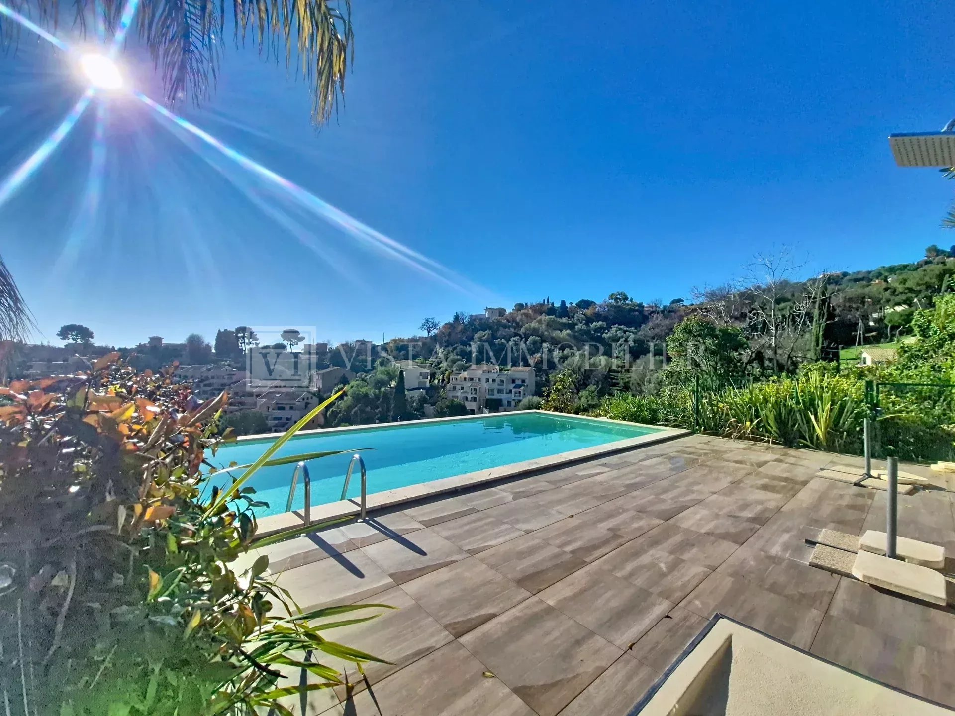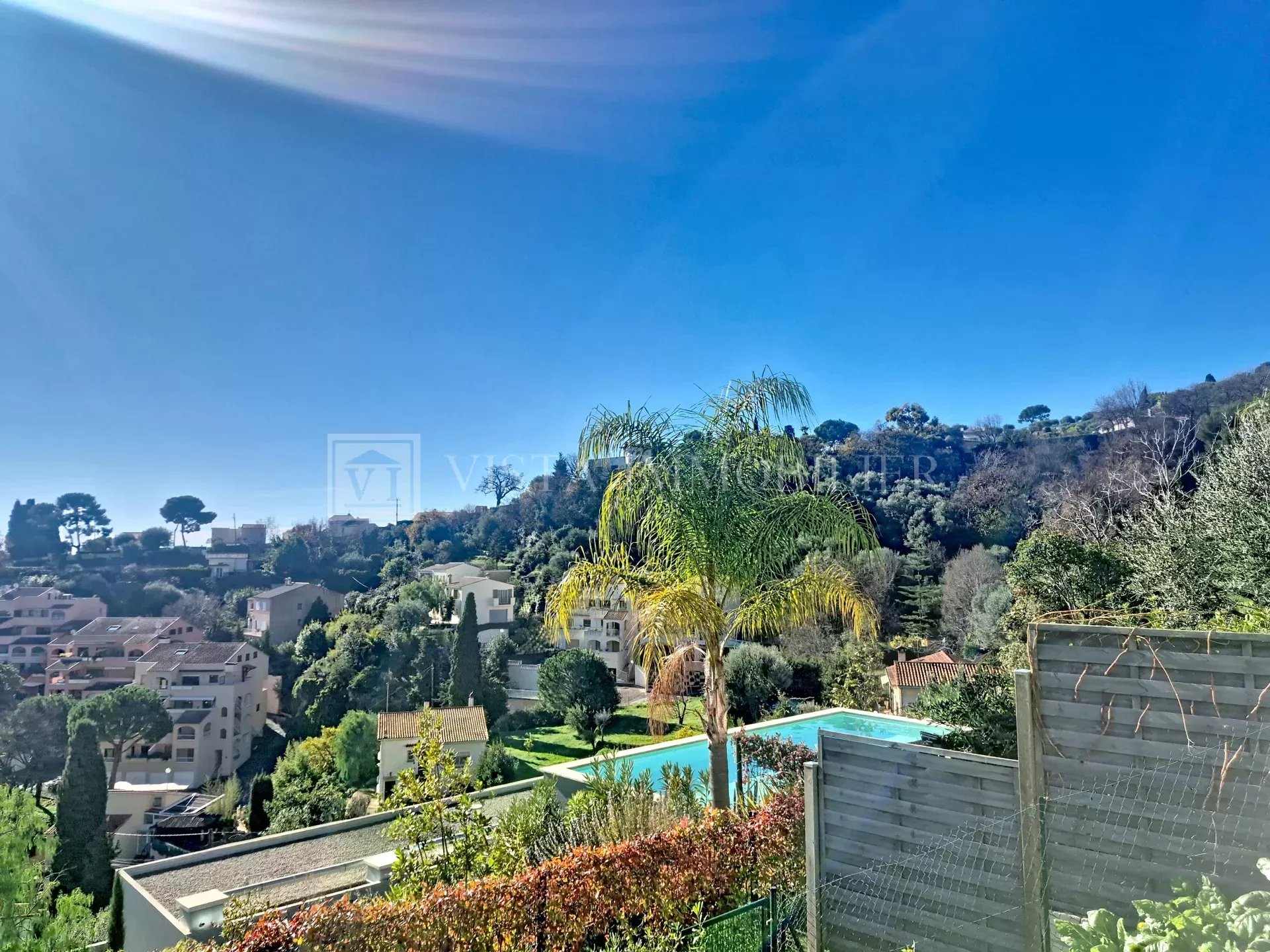 Exposé plein sud-est, le bien bénéficie d’une belle luminosité tout au long de la journée et d’une vue dégagée sur les collines environnantes, avec un agréable aperçu mer.