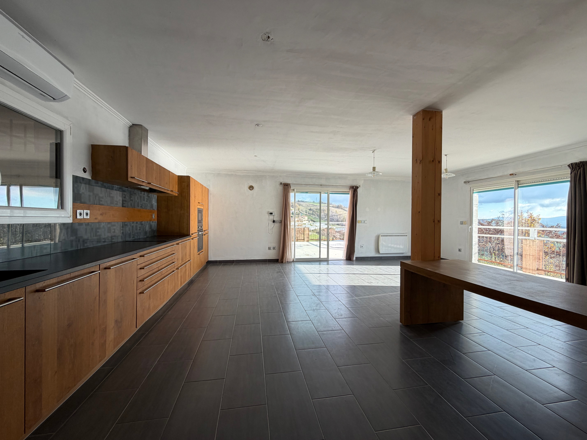 - R+1 : Maison d'habitation 110m2 composée d'un pièce à vivre de 59m2 avec cuisine ouverte avec accès sur grande terrasse avec vue panoramique, 3 chambres, 1 sdb, 1wc. Coin jardin non attenant.