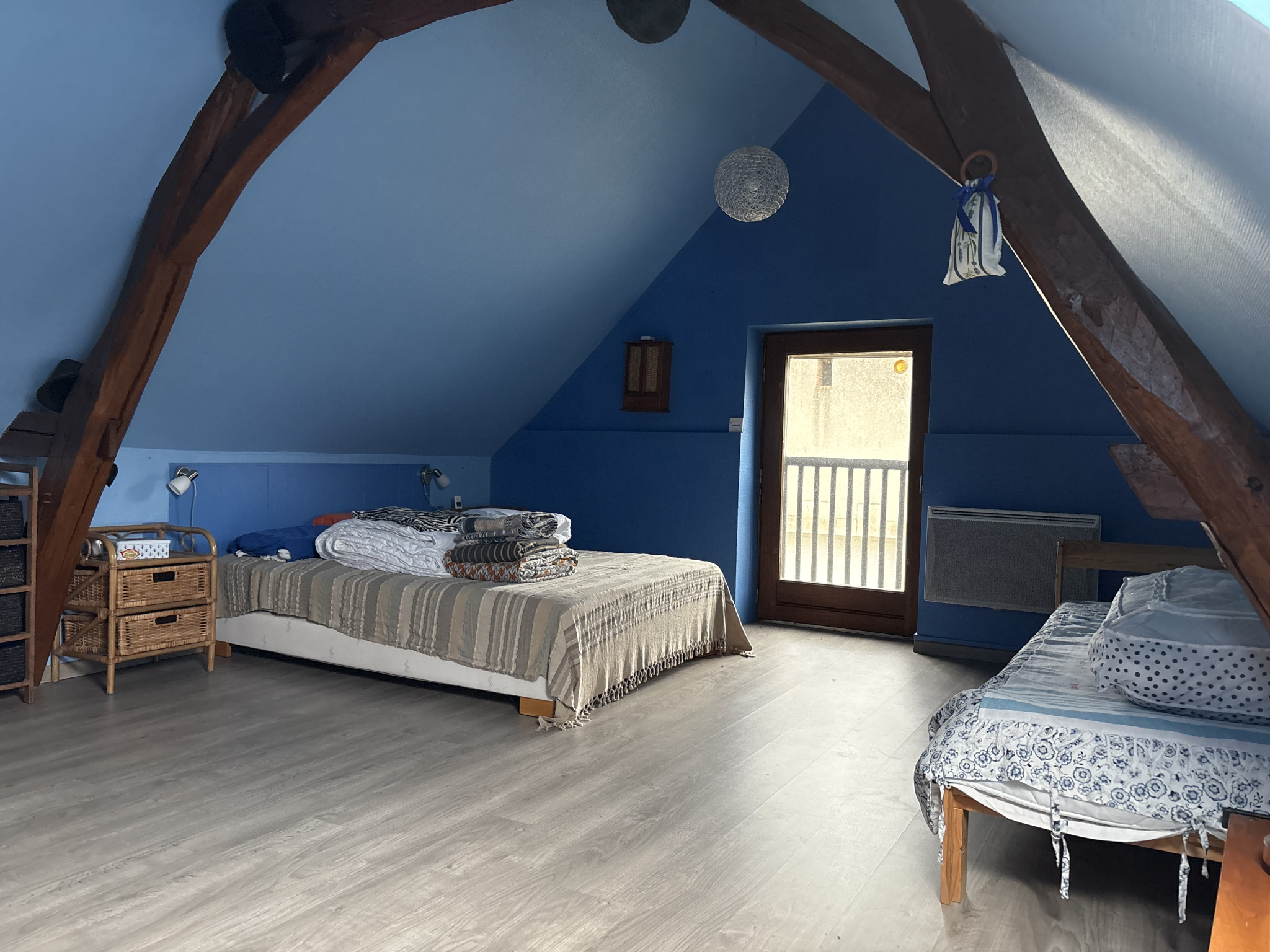 À l'étage, l'espace nuit se compose de deux chambres et d'une salle d'eau, offrant un agencement fonctionnel et agréable pour toute la famille.