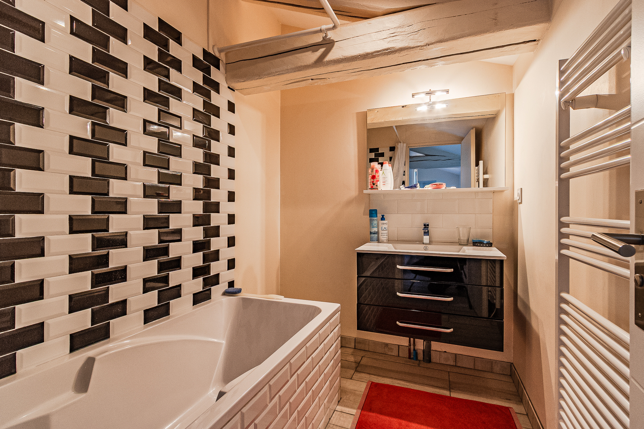 L'étage dispose de 3 chambres, dont une suite parentale équipée d'un dressing, d'une douche et d'une baignoire.