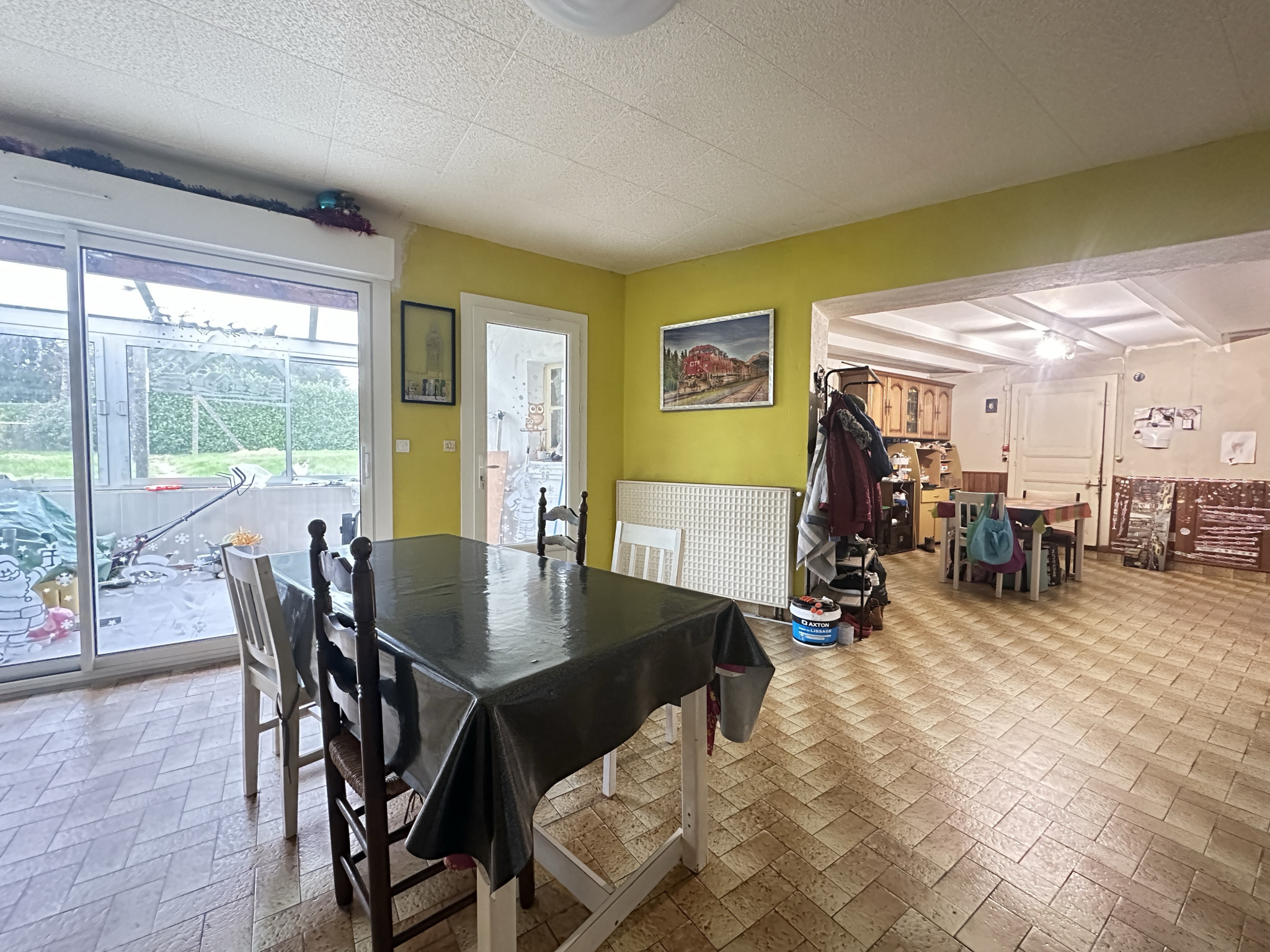 - Située en village maison sur deux niveaux comprenant au rez-de-chaussée : Un espace salon, 2 chambres, une cuisine aménagée ouverte sur la salle à manger, une salle de bains, espace lingerie et un wc. A l'étage nous retrouvons un palier desservant 3 chambres spacieuses 14 à 20 m2. Le tout sur un terrain de 575 m2 environ avec un puits et une véranda. Rafraichissement, finitions et mise en conformité de l'assainissement à prévoir.