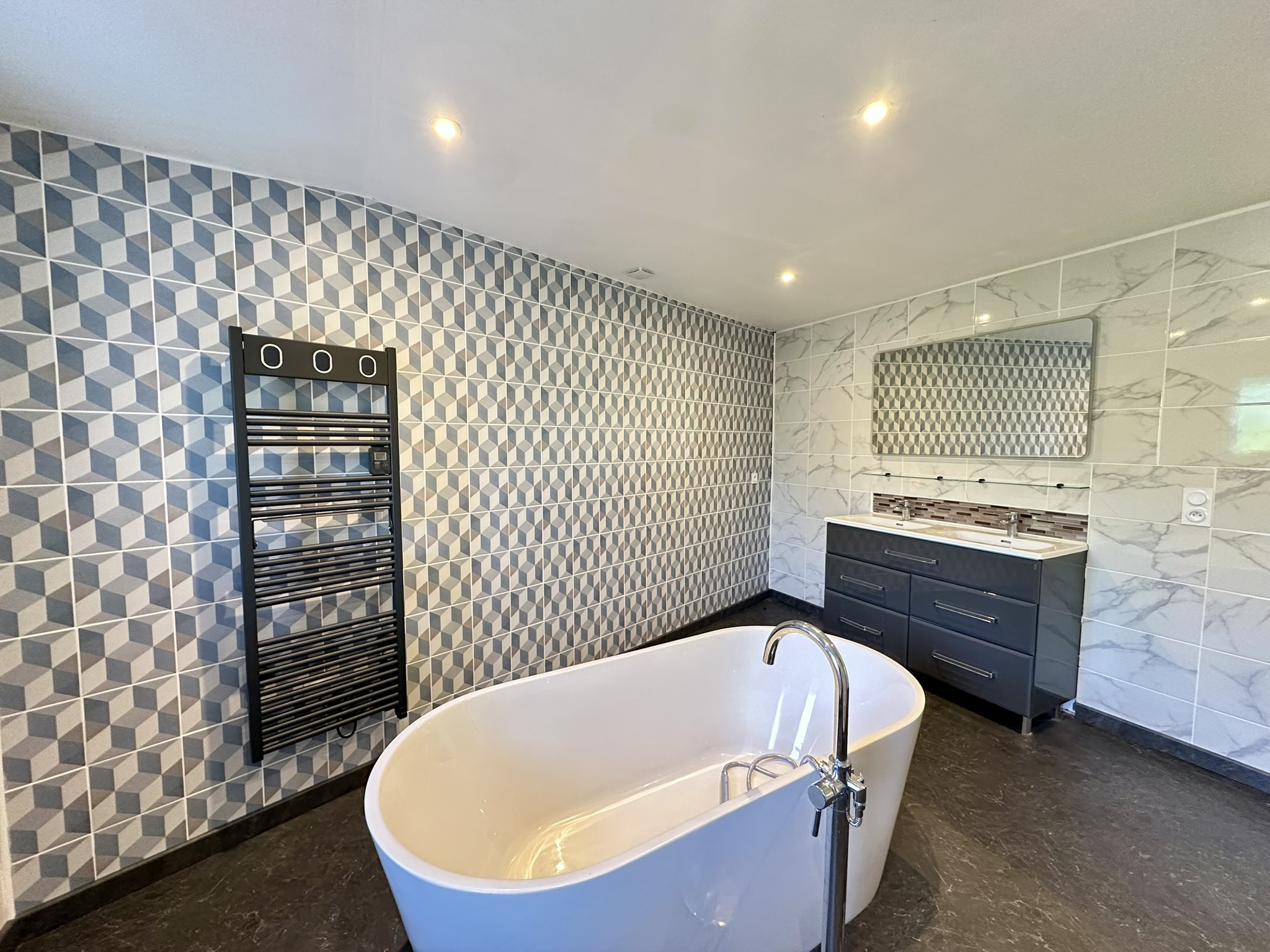 - Les plus : Ouvertures en PVC à double vitrage récentes et chauffage pompe à chaleur air/eau.