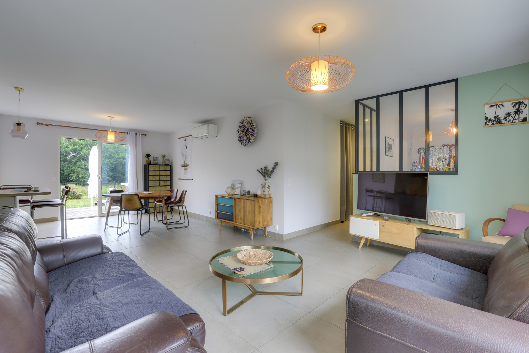L'espace de vie, baigné de lumière grâce à de larges ouvertures, s'articule autour d'une cuisine ouverte et équipée au style contemporain. Deux terrasses, orientées sud et nord, prolongent les espaces intérieurs et invitent à profiter pleinement du cadre extérieur.