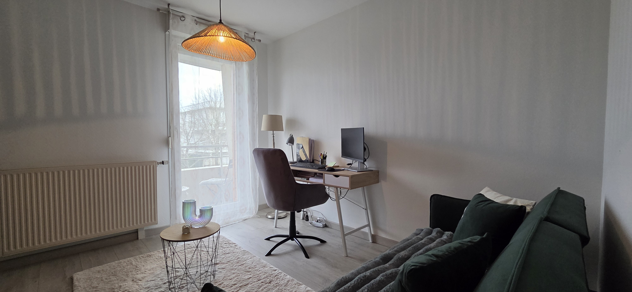 Saint-Apollinaire, dans un quartier très calme et plaisant avec proximité bus DIVIA à 300m, superbe appartement type 3 situé au 1er étage d'une petite copropriété de 2002 bien tenue et sécurisée.