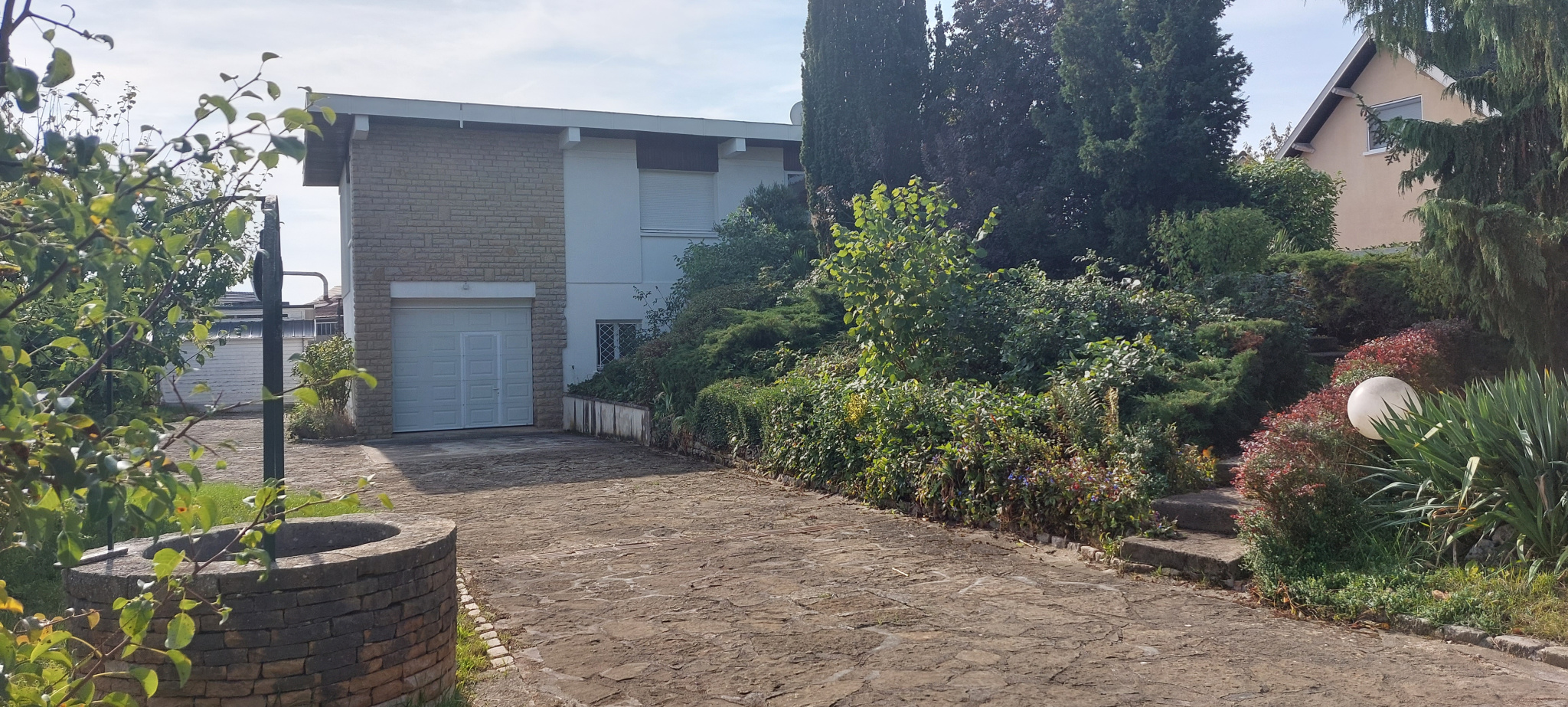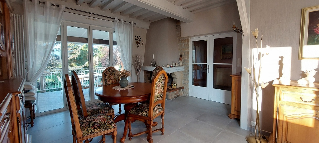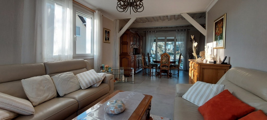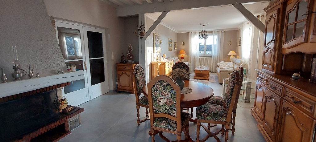 La maison s'articule sur une partie habitation type 5 en bon état avec séj/salon et cheminée, cuisine aménagée, sde, wc et 3 ch. ainsi qu'un vaste s/sol complet agrémenté d'un type 2 de 50 m2 entièrement rénové avec accès indpt.