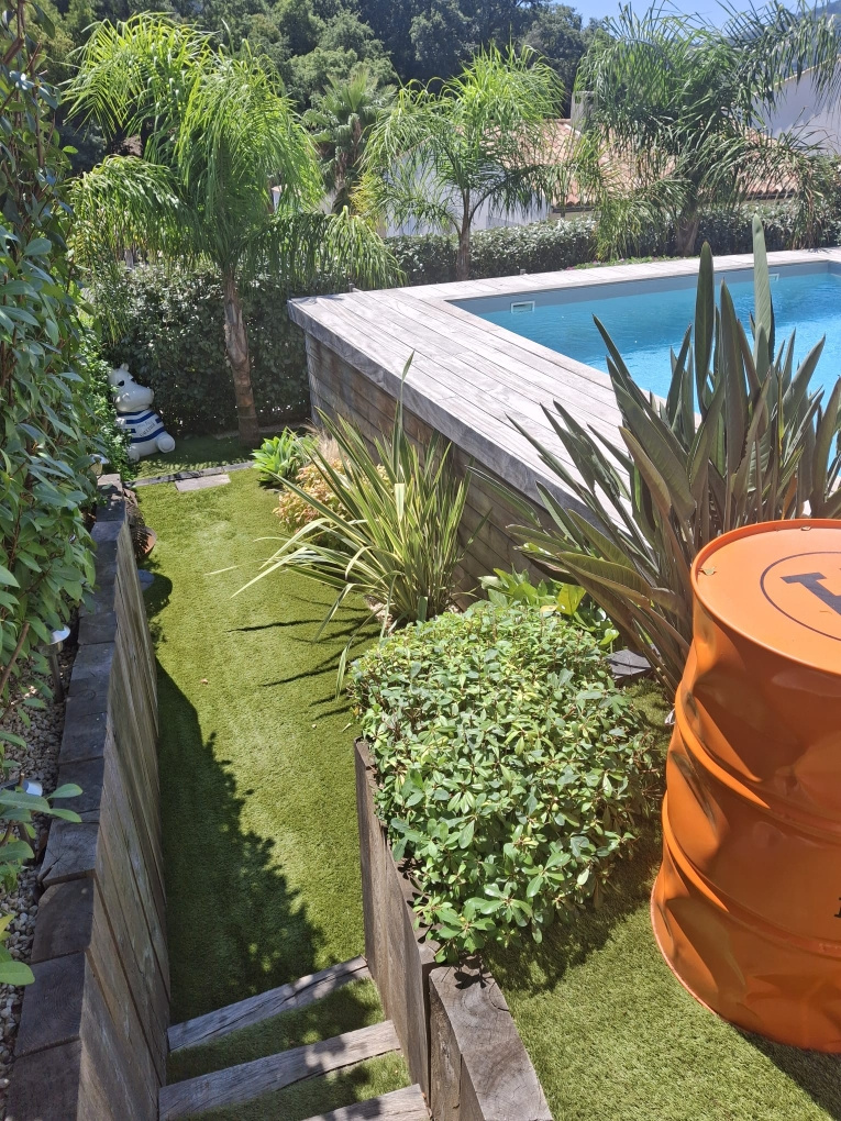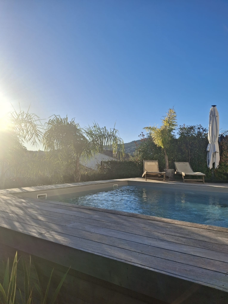 Vous pourrez admirer le soleil couchant sur la terrasse spacieuse, ou sur les marches de sa piscine privative.