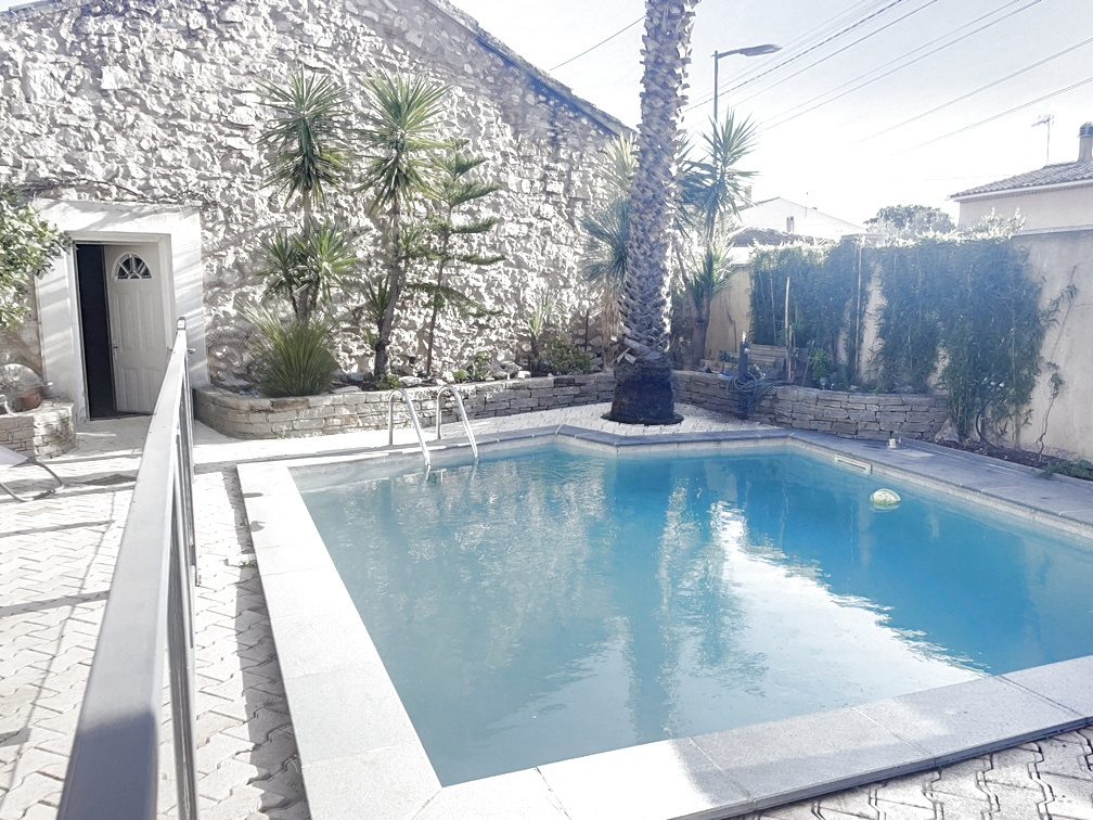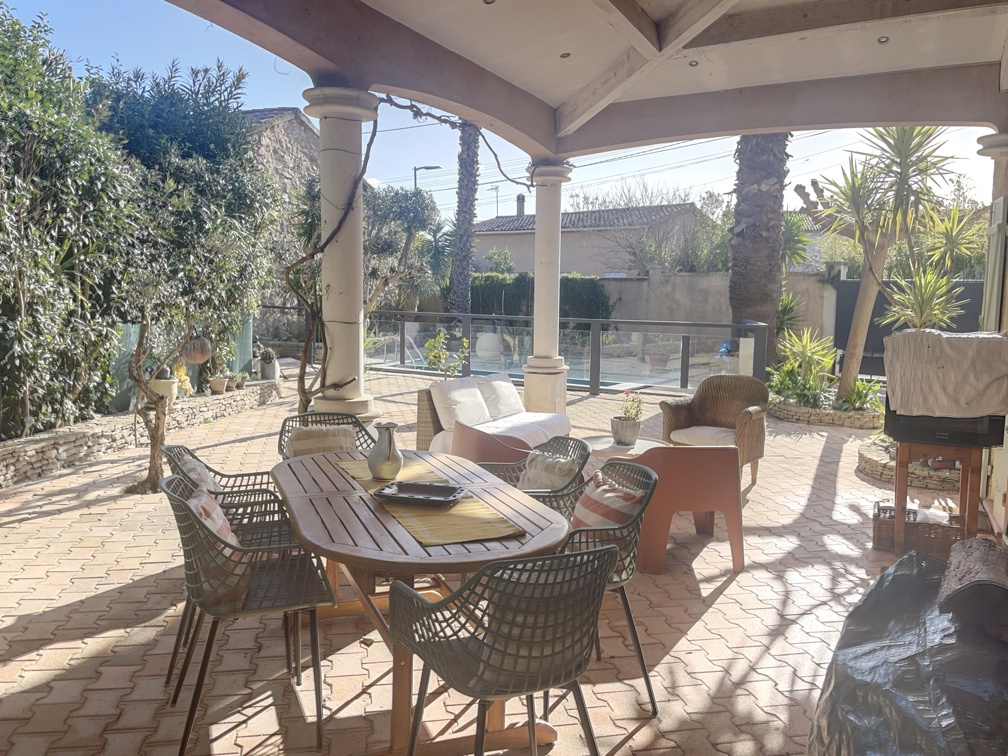 CUERS, villa en parfait état, Proche des commerces . Composée d'une entrée donnant sur une cuisine ouverte et equipée; d'un grand séjour ( 50M2 ) avec une cheminée a bois . Le tout donnant sur une belle terrasse couverte et sa piscine . Dépendance . A VOIR ABSOLUMENT