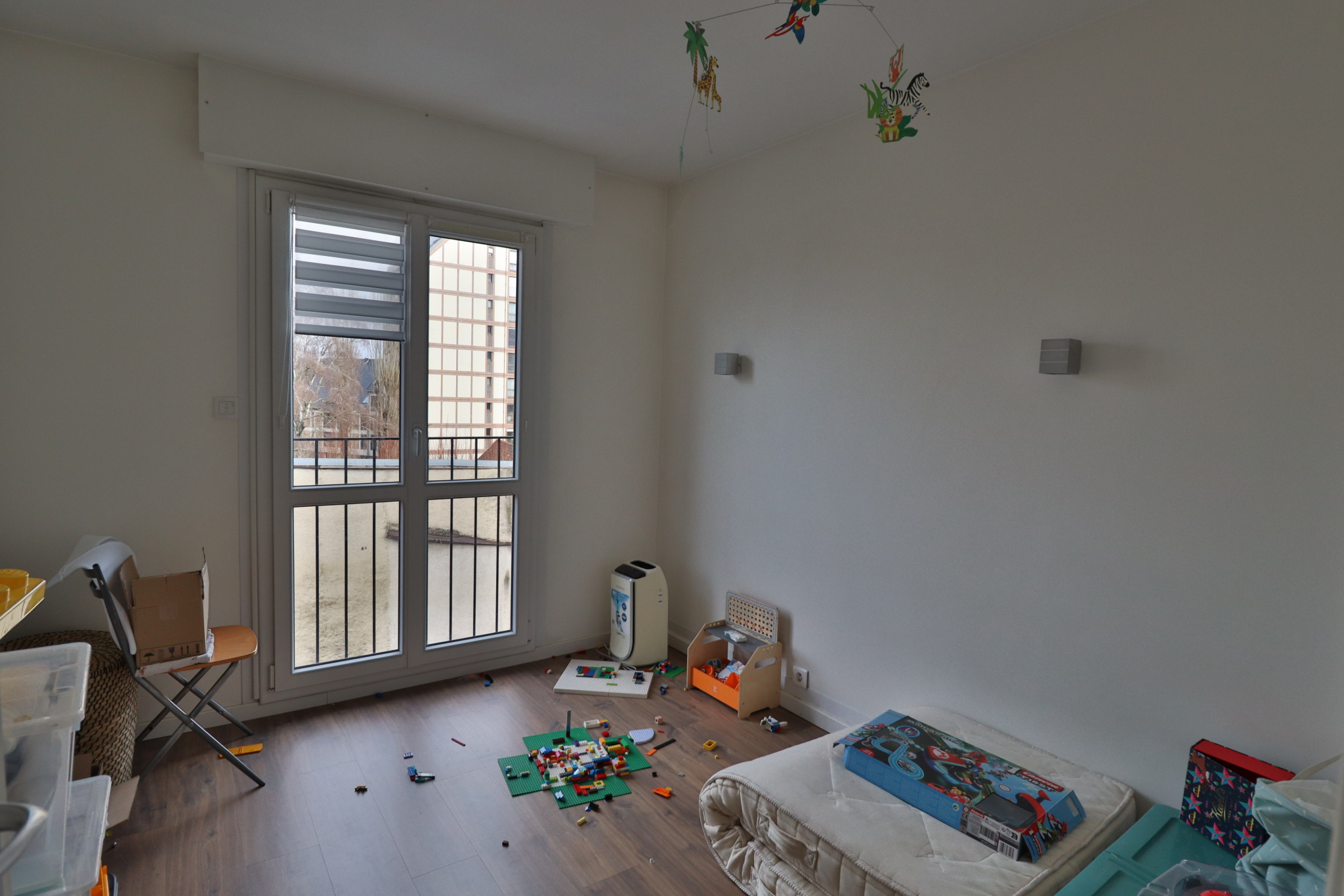 - Une entrée desservant un dressing, salon-séjour, cuisine aménagée semi-ouverte, un dégagement avec placard desservant 2 chambres, une salle de bains et un wc.