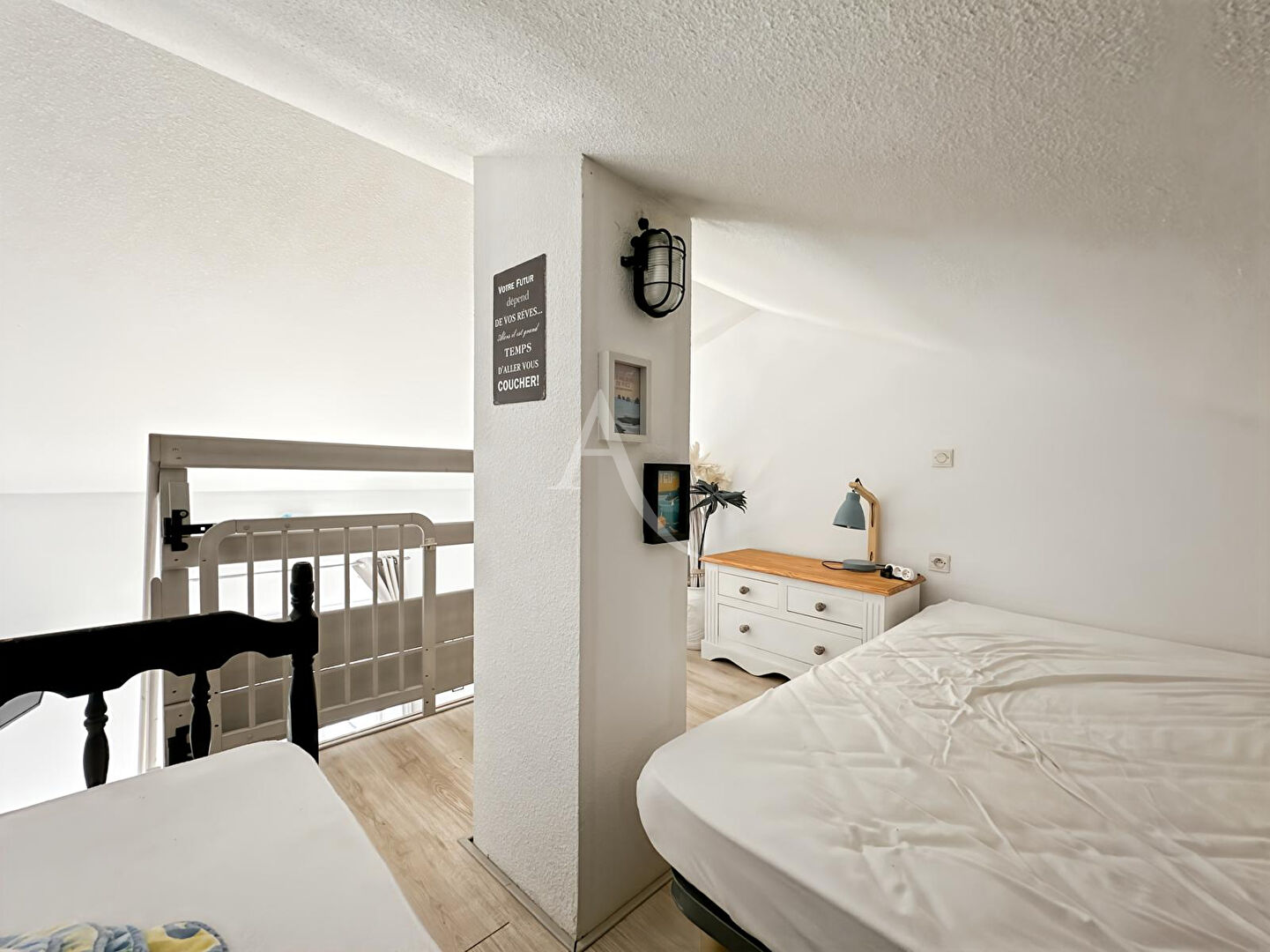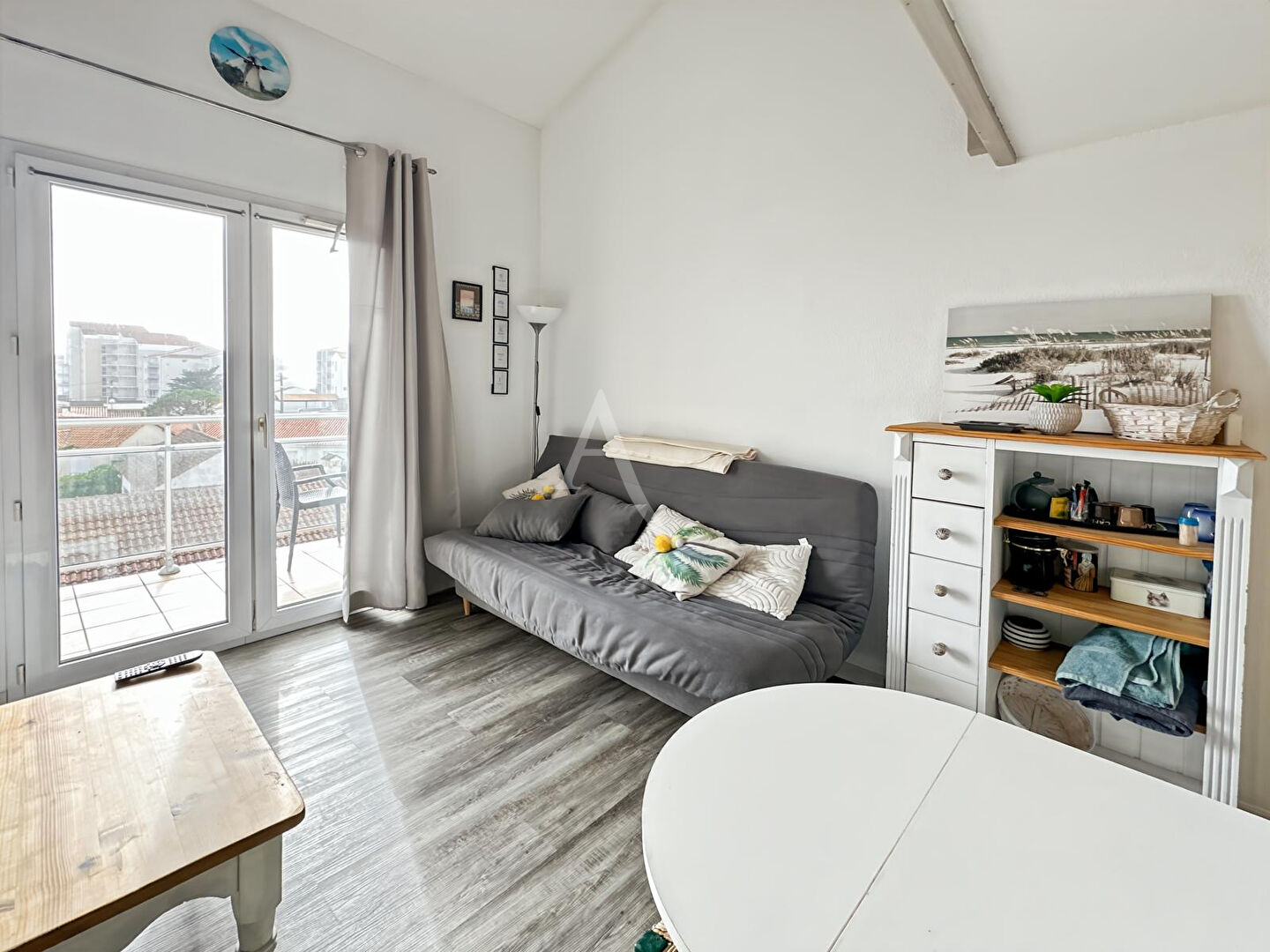 SAINT HILAIRE DE RIEZ- A VENDRE - En copropriété, situé au 3ème et dernier étage d'une résidence face mer, joli studio mezzanine de 16.65m² Loi Carrez et 25.08m² au sol en incluant la mezzanine. Vendu entièrement meublé et équipé, cet appartement est doté d'un balcon exposé Sud Est de 4.28m² avec vue latérale mer.