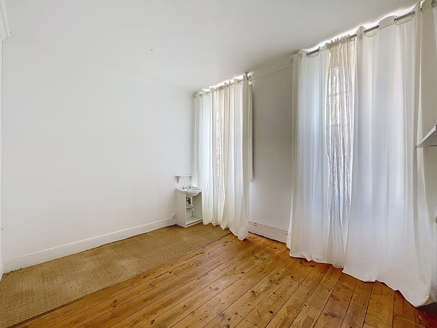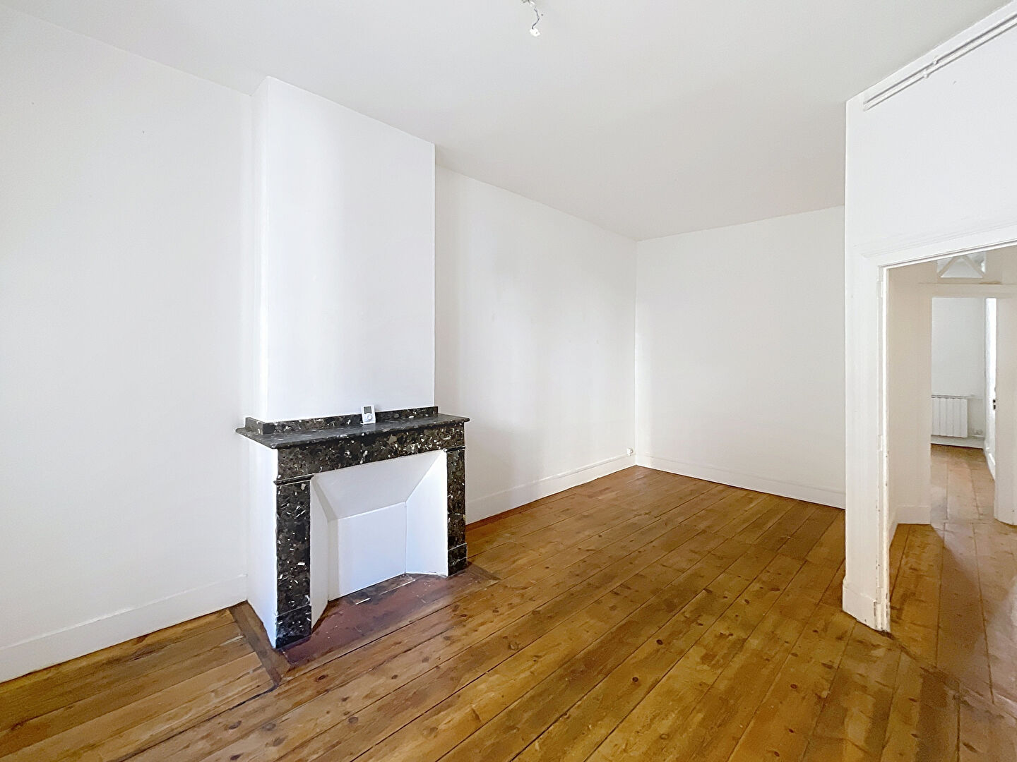 Cheminées et parquet, double fenêtre côté rue et double vitrage côté terrasse.
