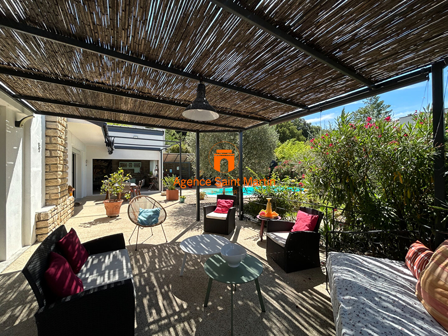 Montélimar, proche des commodités, Maison entièrement rénové de 122 m². (110 m² loi carrez) La maison se compose en sous sol d'un garage, atelier, pièce de rangement, salle de jeux. Au premier, pièce à vivre donnant sur les terrasses, la piscine, cellier et suite parentale. Au second deux chambres et salle d'eau. L'intégralité de la maison a été rénovée (sols, électricité, murs, plomberie, extérieurs, façade..) Chauffage central + climatisation a l'étage. Ballon d'eau solaire. Terrain de plus de 1000 m² entièrement aménagé et clos. Visite Virtuelle disponible