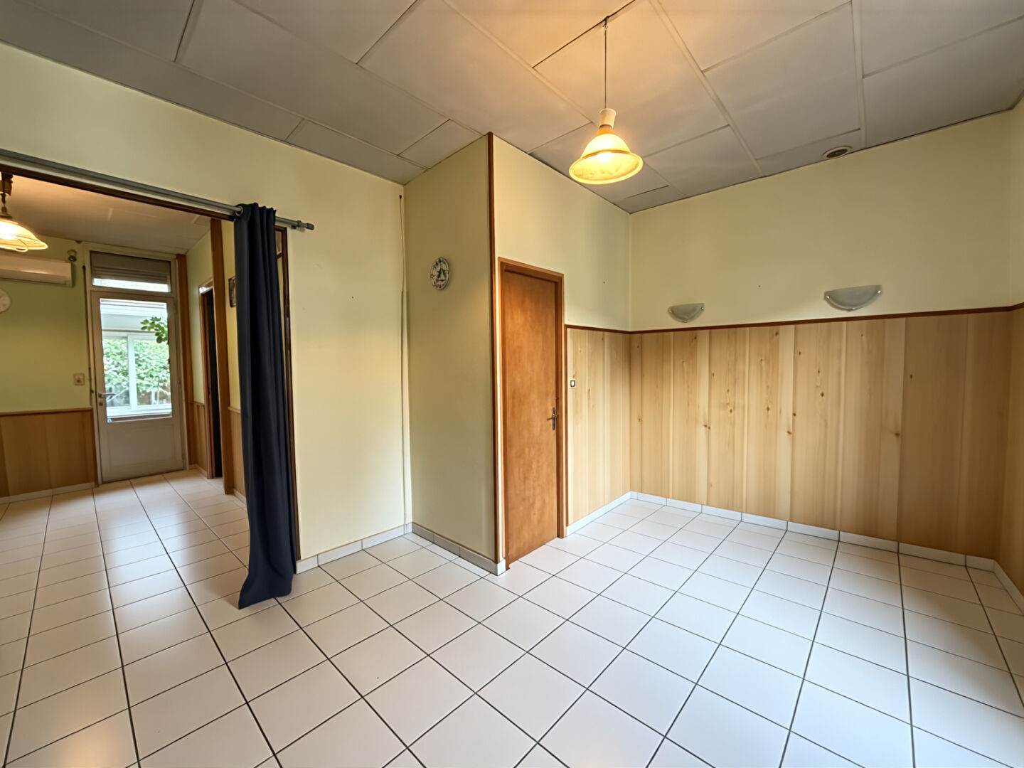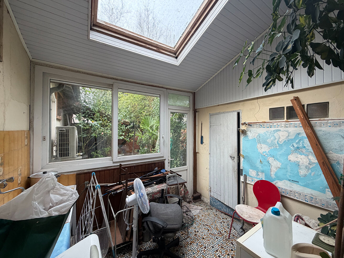 La maison développe 60 m² habitable, entièrement à rénover. La distribution actuelle comprend une grande entrée, un séjour, une chambre et un bureau, laissant de nombreuses possibilités d'aménagement.