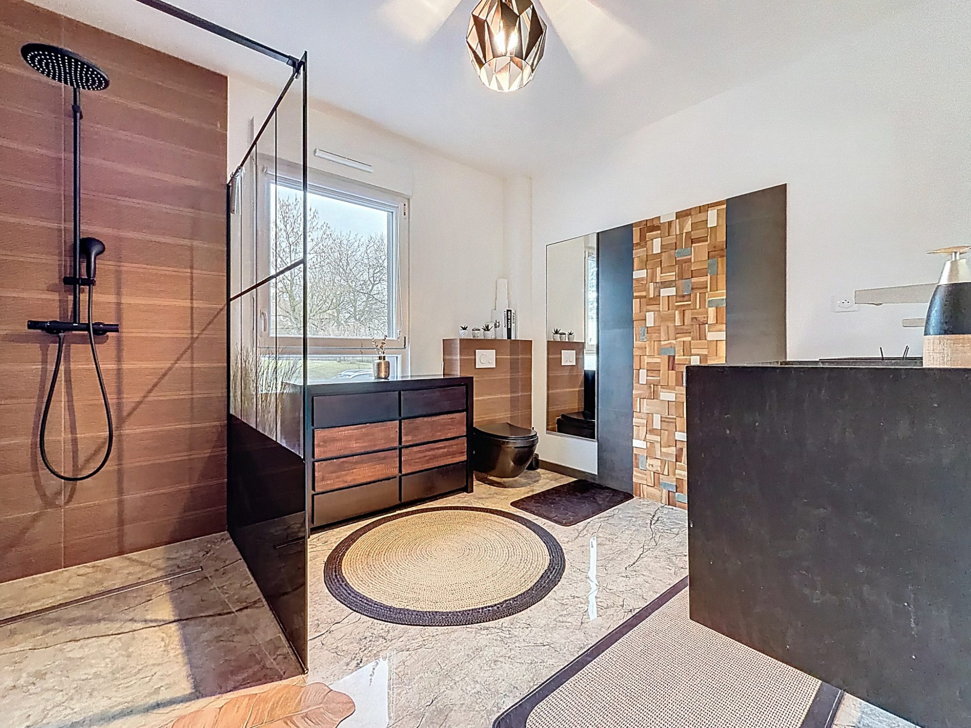 A l'étage, un palier, trois grandes chambres et une grande salle de bains proposant une seconde douche italienne avec WC