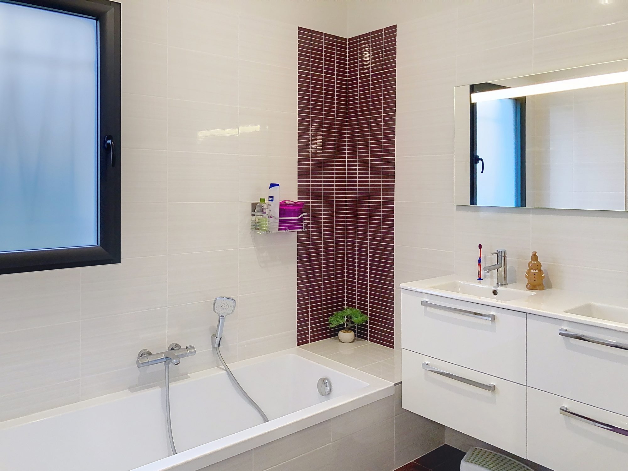 venez découvrir cette superbe maison contemporaine de plain-pied implantée sur une parcelle arborée de plus de 1 000 m², agrémentée d'une piscine (au sel) chauffée de 12 x 3,5 m.
