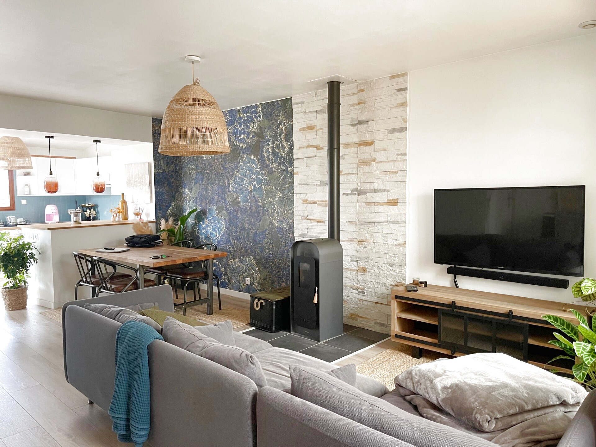 Dès l'entrée, vous serez séduits par sa lumineuse véranda, idéale pour profiter de chaque saison. Le séjour-salon chaleureux, agrémenté d'un poêle à granulés (chauffage principal de la maison), s'ouvre sur une cuisine aménagée et équipée, conviviale et fonctionnelle, avec accès direct à la terrasse pour de beaux moments en extérieur.
