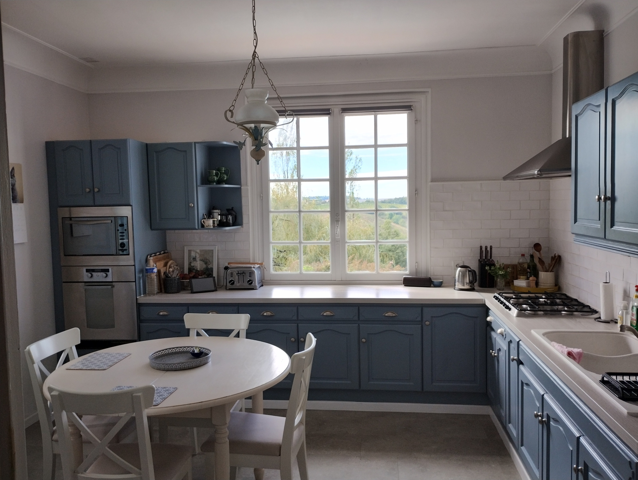 Cuisine lumineuse avec vue dégagée sur la campagne