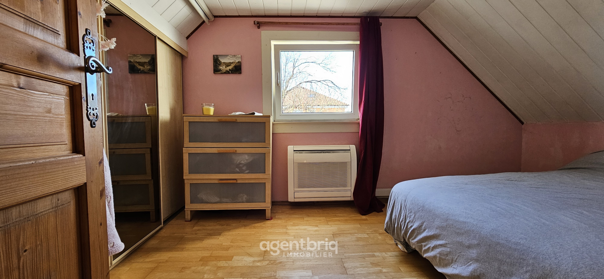 À Riedisheim, maison atypique idéalement située face au canal. Cette propriété 86 m2 habitables (105 m2 au sol et 140 m2 de surface utile) offre un cadre de vie où la nature s'invite à votre fenêtre en restant proche de la ville et des commerces.