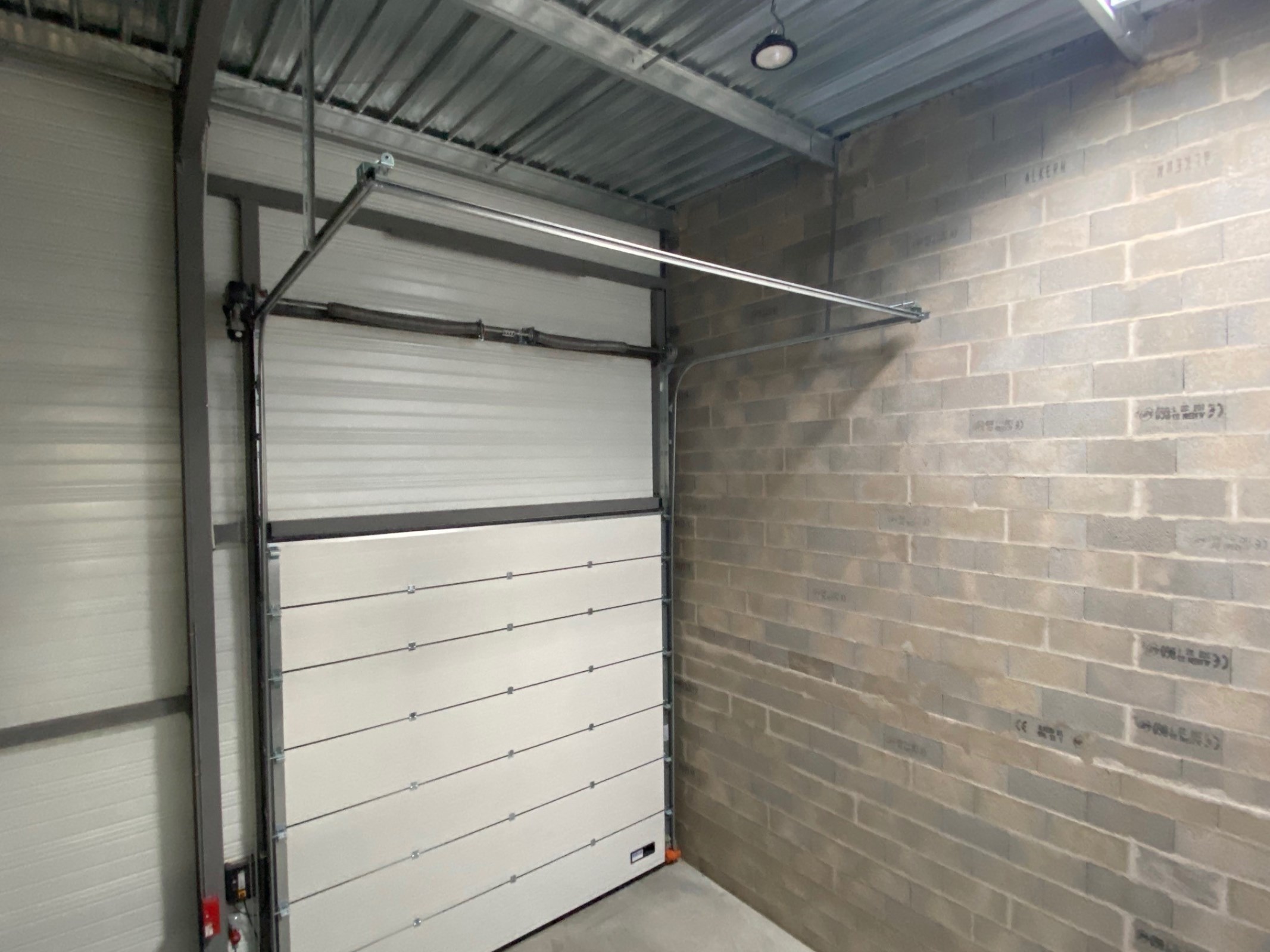 o 193,21m² dédiés à l'entrepôt, offrant un espace de stockage fonctionnel et accessible avec une porte sectionnelle.