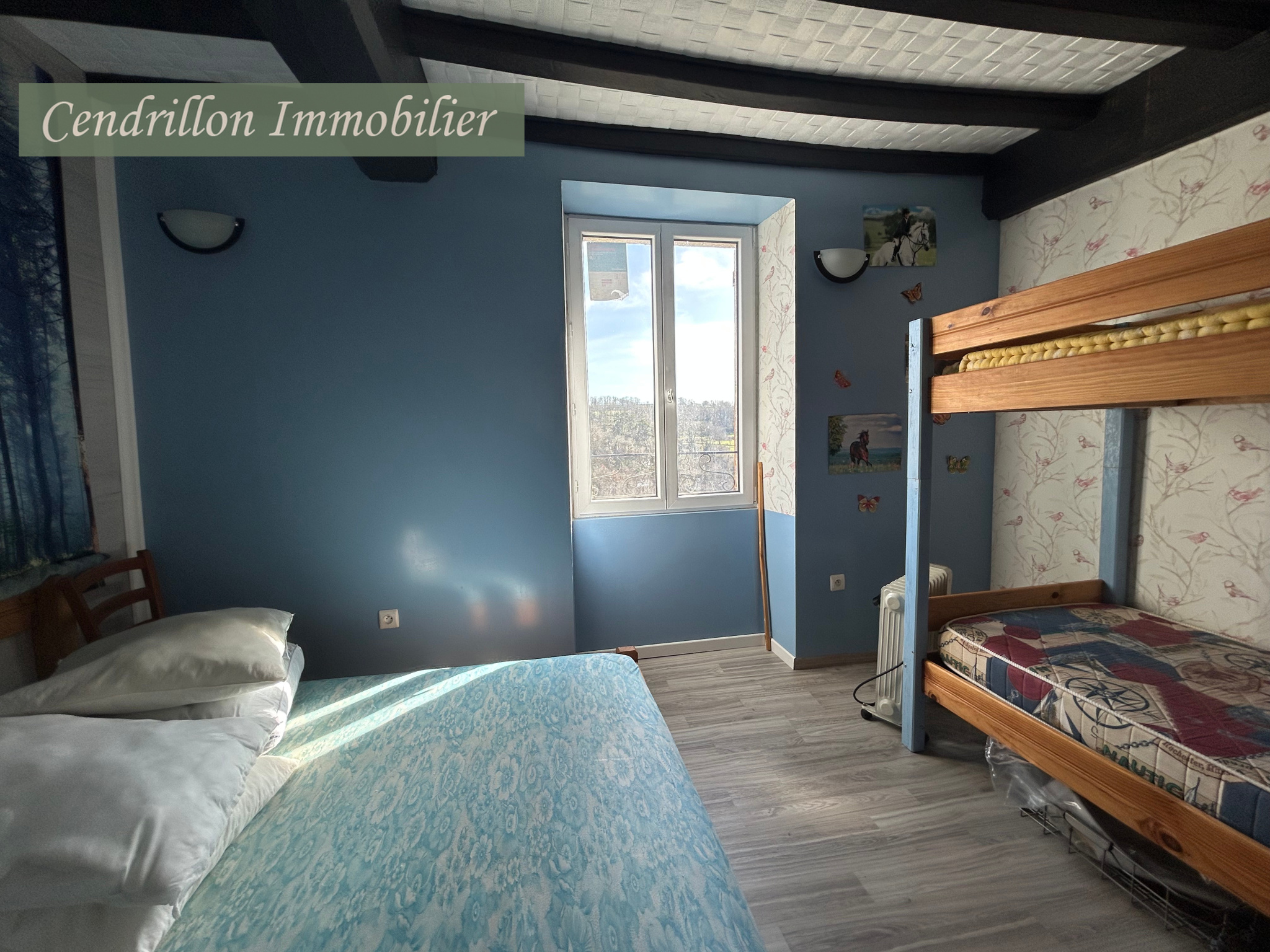 À l'étage (en cours de rénovation) 3 chambres, un salon et une salle d'eau.