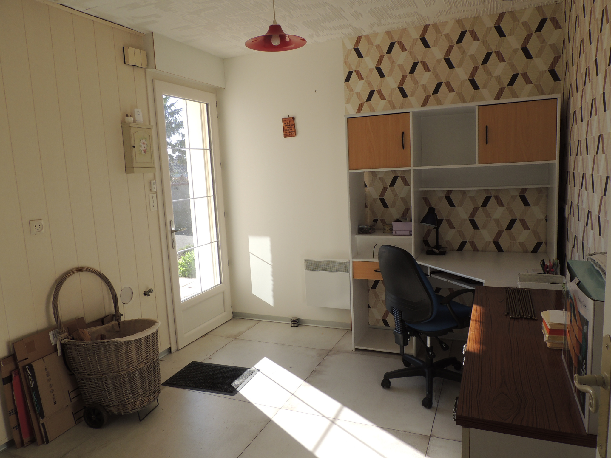 Elle comprend : hall d'entrée, salon/séjour avec poêle à bois ouvert sur cuisine aménagée et équipée, bureau/buanderie avec accès grenier, pièce polyvalente (salle de jeux) avec placards et point d'eau. Côté nuit : dégagement, salle d'eau avec douche à l'italienne, 3 chambres avec placard.