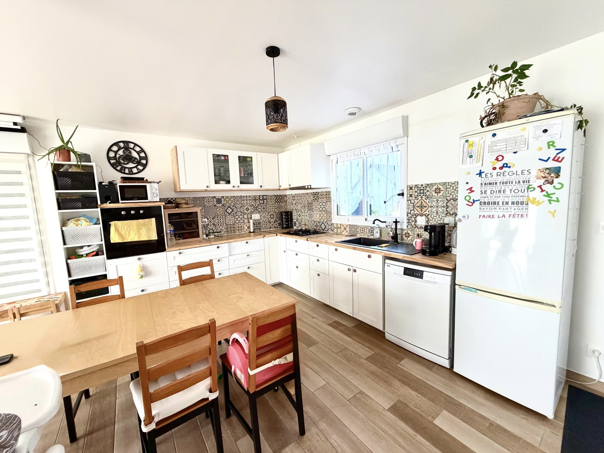 Dès l'entrée, vous serez séduit par une belle pièce de vie baignée de lumière, avec sa cuisine entièrement aménagée et équipée ouverte sur le séjour, créant un espace convivial et chaleureux.
