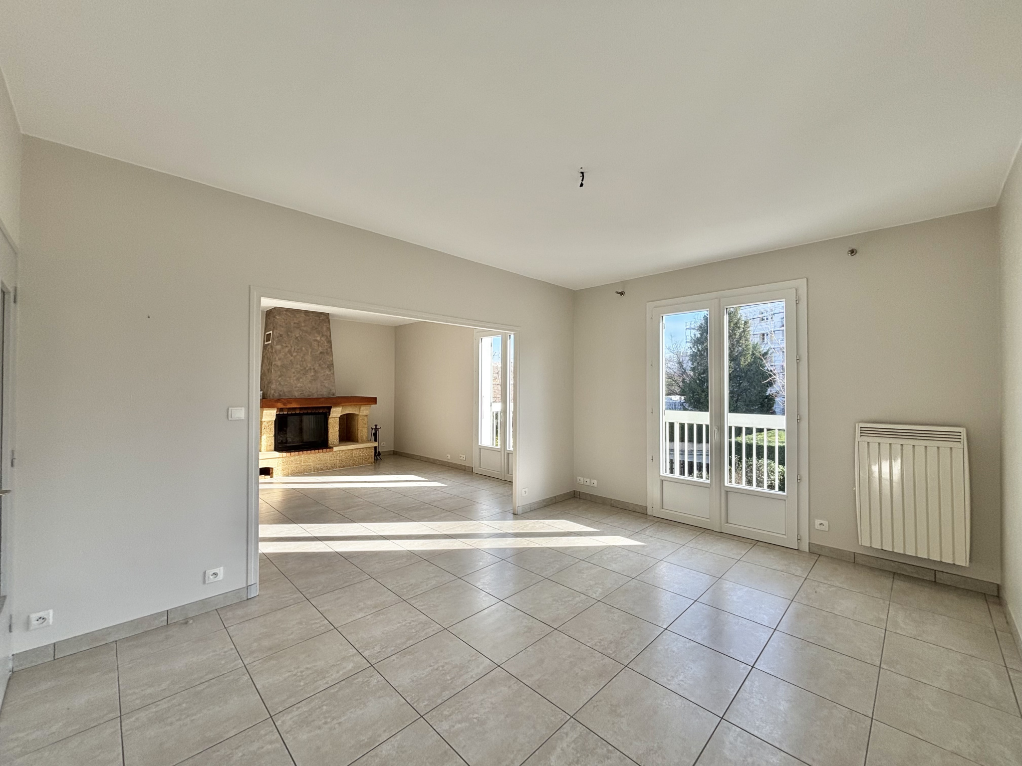 Ces trois pièces bénéficient d'un accès direct à un balcon filant de 19,5 m2 (profondeur comprise entre 120 cm et 140 cm),qui est équipé de deux stores bannes.