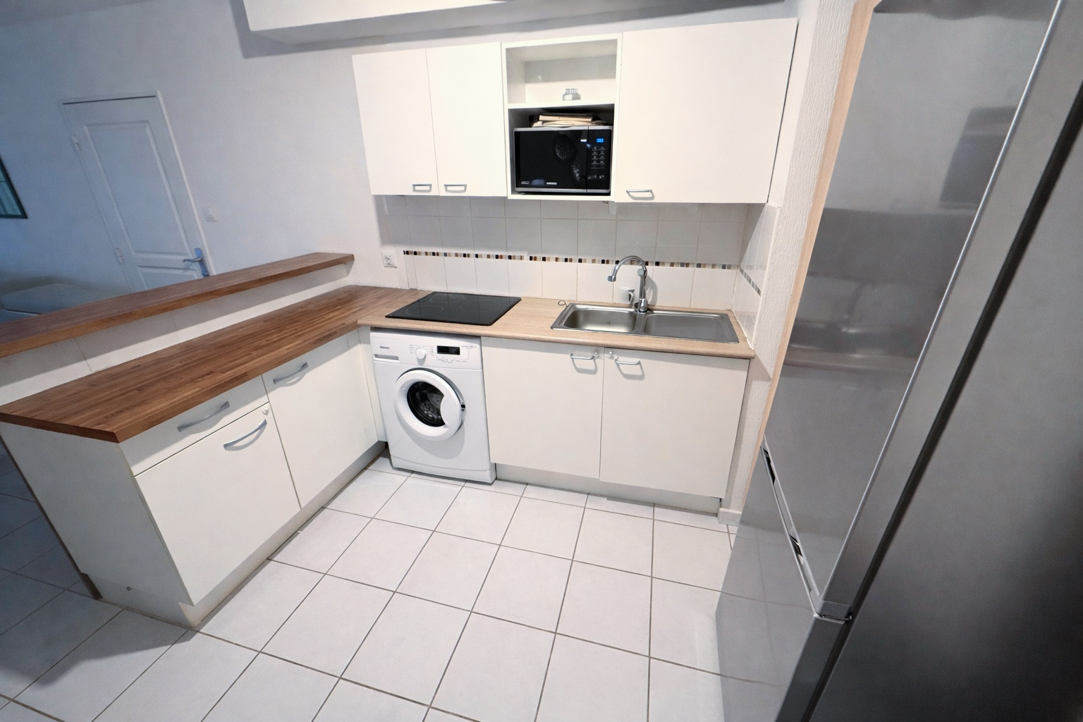 Il comprend une cuisine ouverte sur le séjour, deux chambres dont une avec placard, une salle de bains, wc et dégagement,