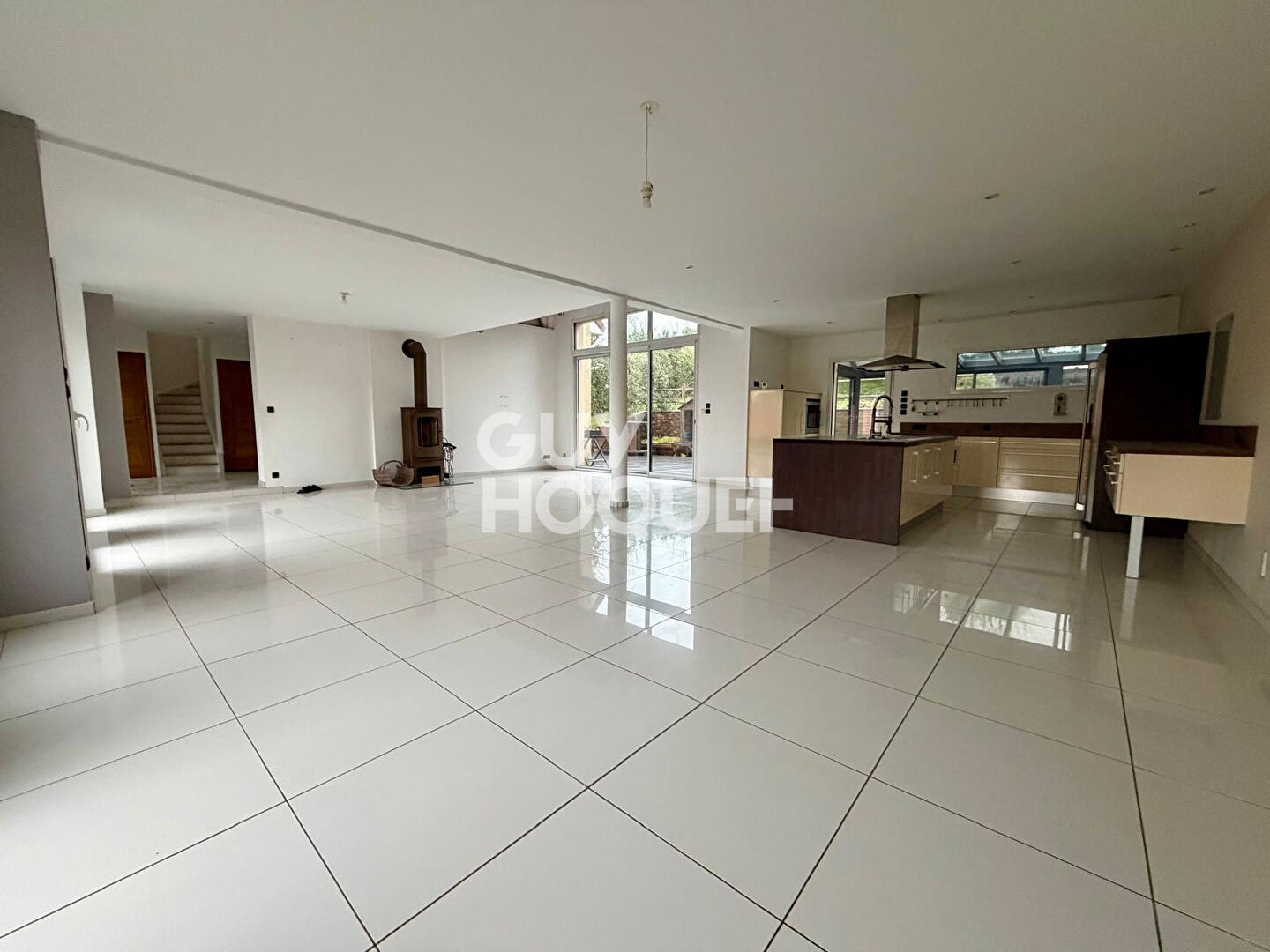 Une pièce de vie lumineuse de près de 90 m² avec feu à bois, ouverte sur une véranda de 30 m²