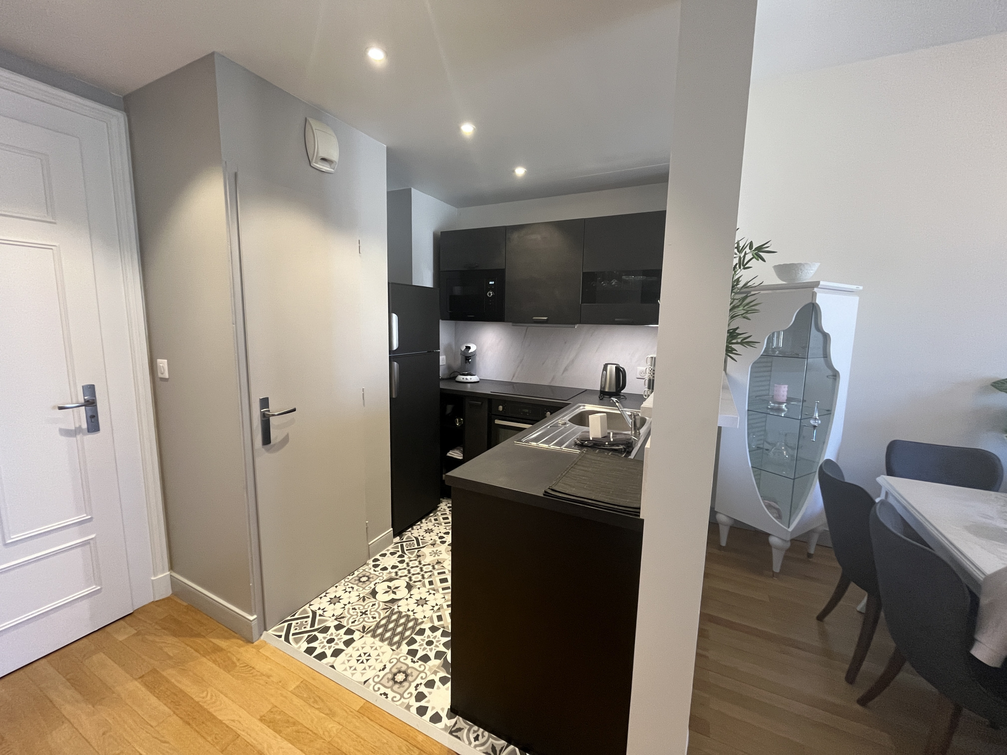 l'appartement se compose d'une kitchenette équipée, d'un salon/séjour décoré avec goût, d'une chambre spacieuse, et d'une salle d'eau.