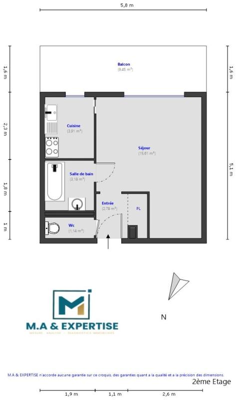 Il se compose d'un séjour, une cuisine indépendante, d'une salle de bains ainsi que d'un WC indépendant.