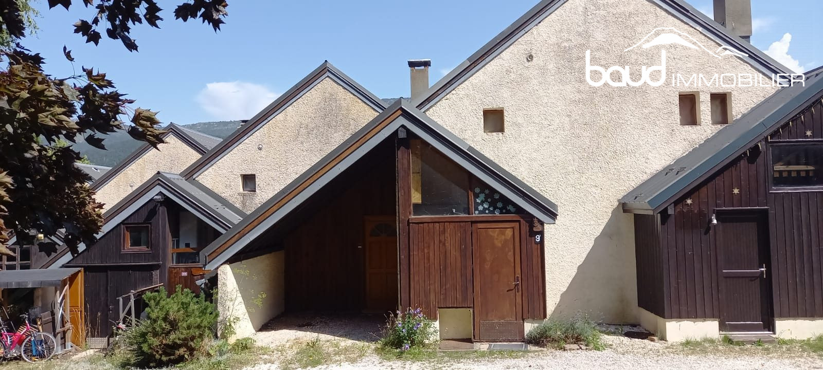 T2 DUPLEX - Dans un hameau entre Villard de Lans et Lans en Vercors, au calme avec vue à l' Est, partie de maison mitoyenne en copropriété d'environ 31.50 m² au sol soit un appartement duplex comprenant une entrée aménageable (auvent 10 m²), sas d'entrée, séjour et cuisine ouverte équipée, porte fenêtre donnant accès au jardin clôturé de 43 m².