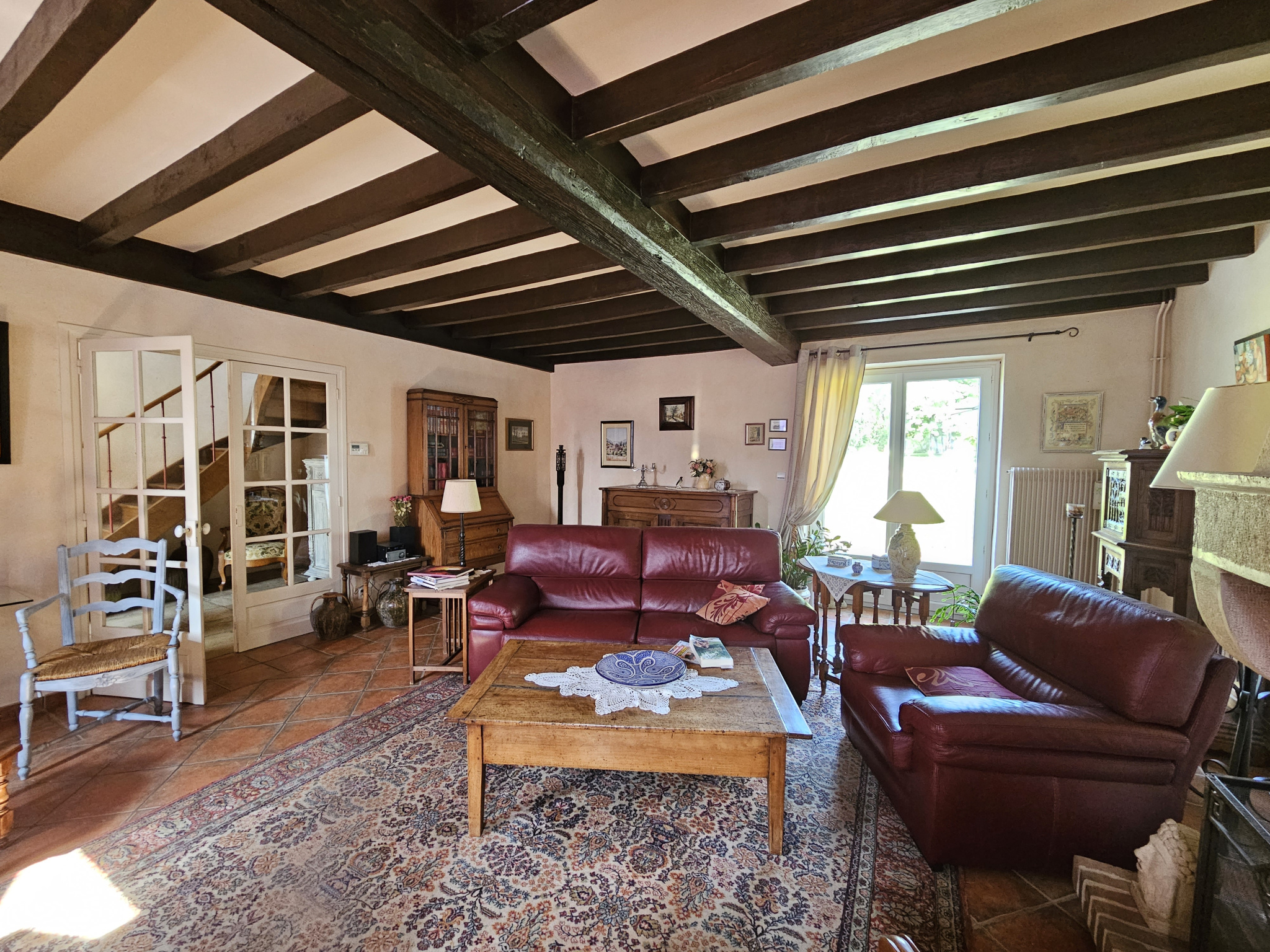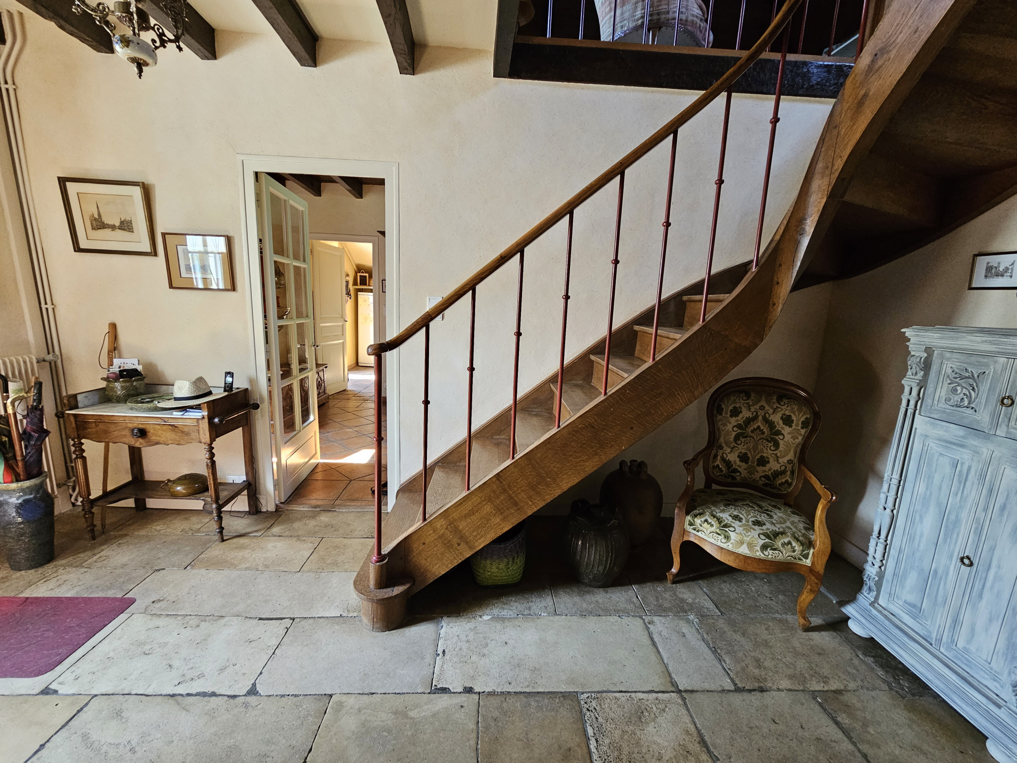 Étage avec magnifique charpente apparente : grande mezzanine avec espace bureau ou possibilité de chambre supplémentaire, deux chambres, salle d'eau et WC séparé.