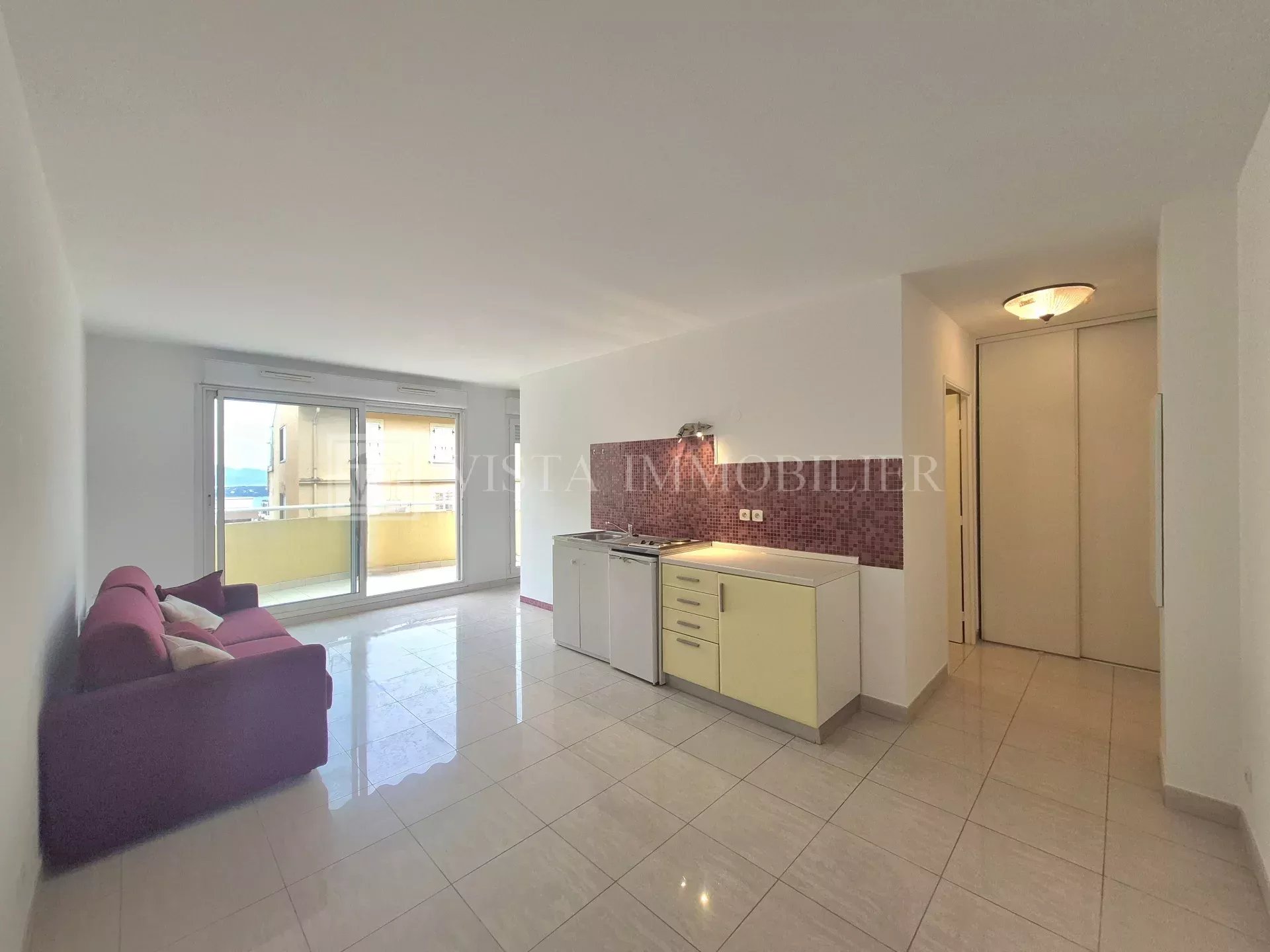 Il se compose d’une entrée, d’un séjour avec coin cuisine, d’une chambre, d’une salle de douche avec WC ainsi que d’un placard de rangement. L’ensemble est fonctionnel et bien agencé, optimisant chaque espace pour offrir un confort de vie au quotidien. La pièce de vie, lumineuse, permet d’aménager aisément un coin salon et un espace repas, tandis que la chambre propose un cadre reposant.