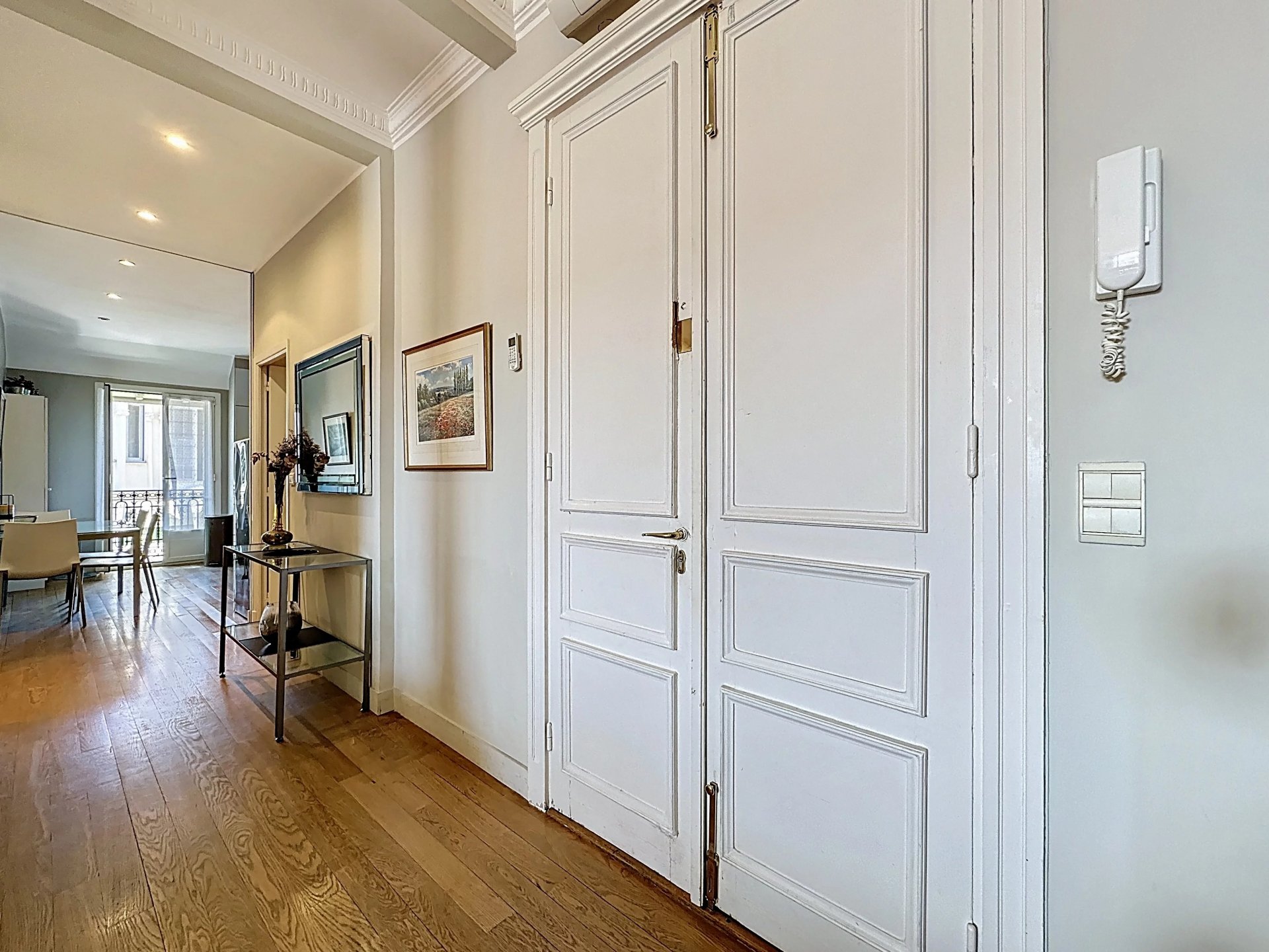 L’appartement séduit par ses VOLUMES et son CACHET : belle entrée, séjour ÉLÉGANT ouvrant sur un BALCON, hauts plafonds, colonnes et détails architecturaux de CARACTÈRE.