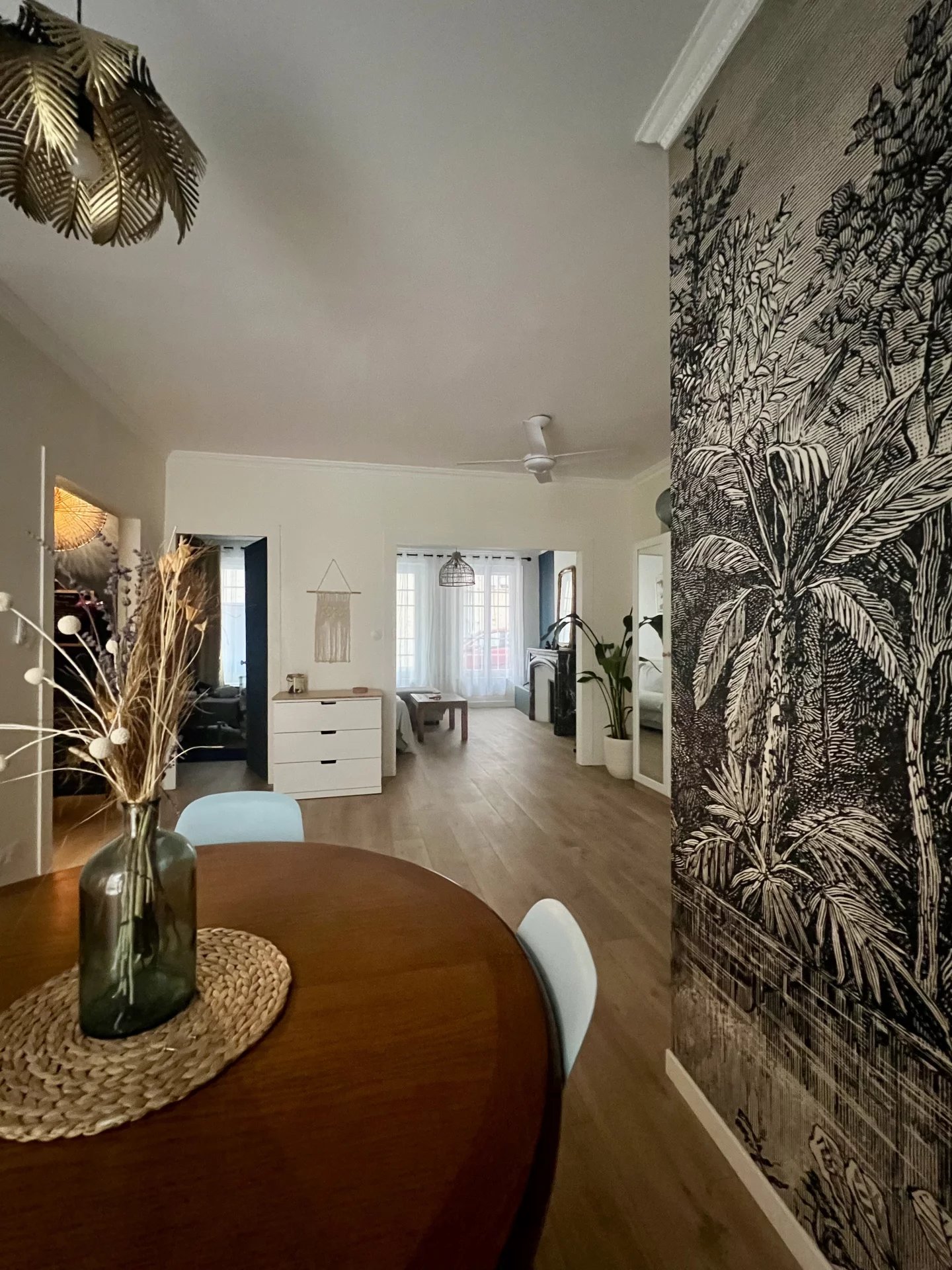 Idéalement situé à deux pas de la place de la mairie, dans une rue particulièrement calme, ce très bel appartement en rez-de-chaussée se trouve au sein d’une petite copropriété intimiste. Entièrement rénové avec soin, il offre de beaux volumes et une distribution harmonieuse :