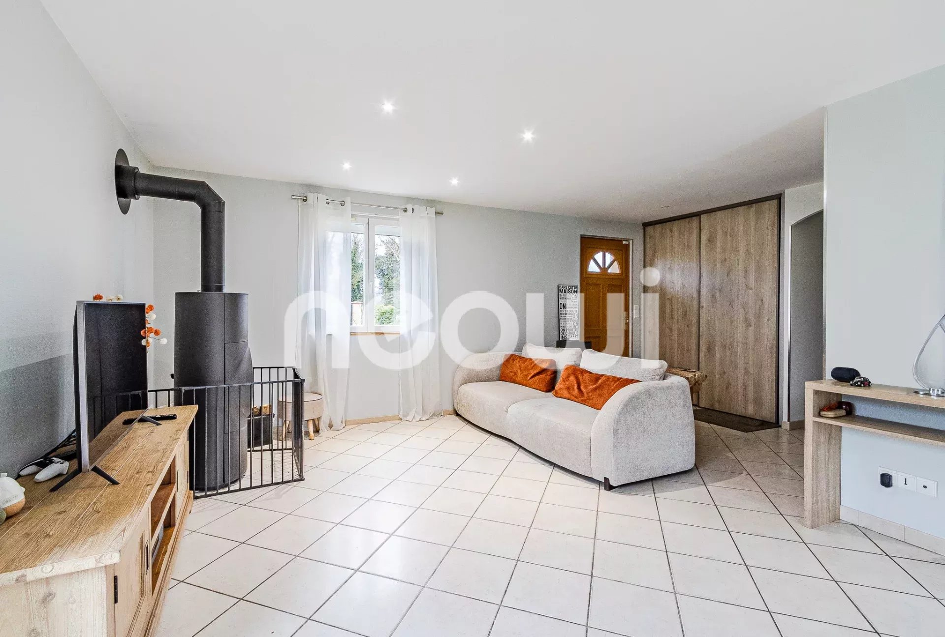 - d'une vaste et lumineuse pièce de vie avec accès direct sur les extérieurs comprenant une cuisine équipée récente très fonctionnelle ouverte sur l'espace séjour et salon agrémenté d'un poele.