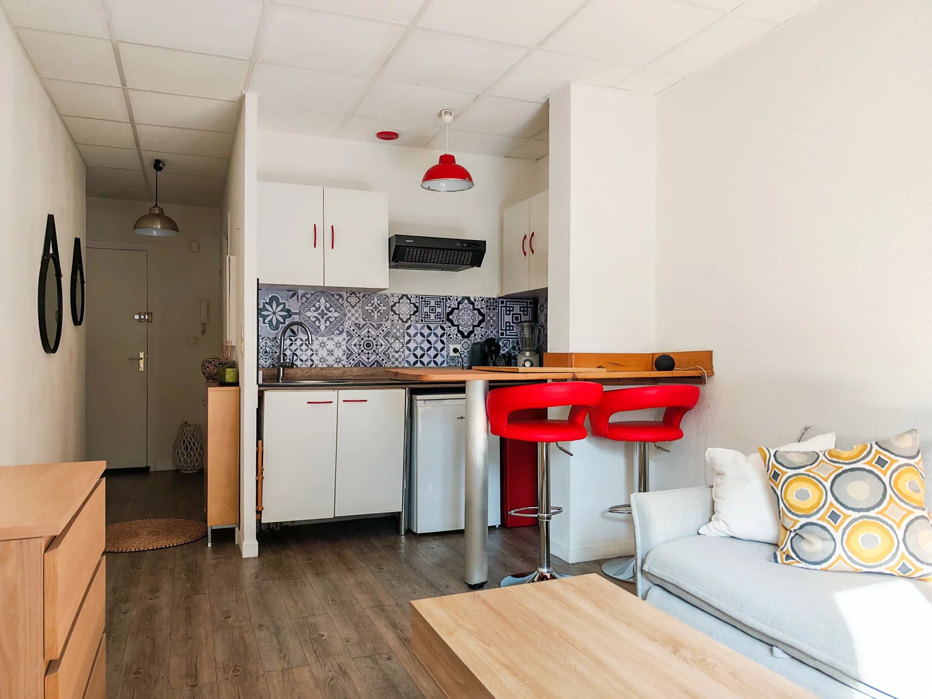 L’appartement se compose d’une pièce de vie lumineuse ouvrant sur l’extérieur, d’un coin cuisine fonctionnel et d’une salle d’eau avec WC. Une cave complète ce bien.