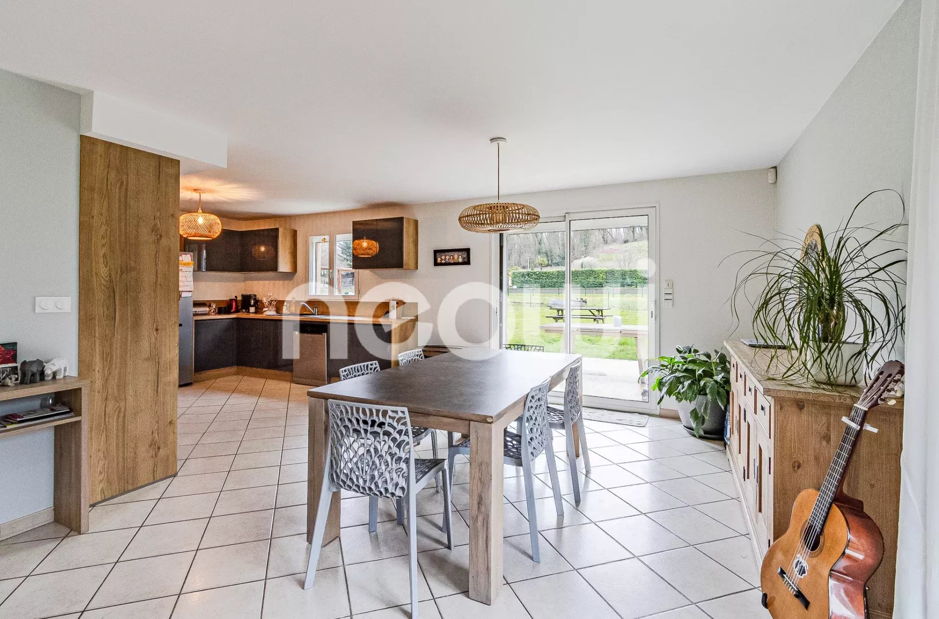 - d'une vaste et lumineuse pièce de vie comprenant une cuisine équipée moderne et fonctionnelle, ouverte sur un salon/séjour avec cheminée et accès direct sur la terrasse.
