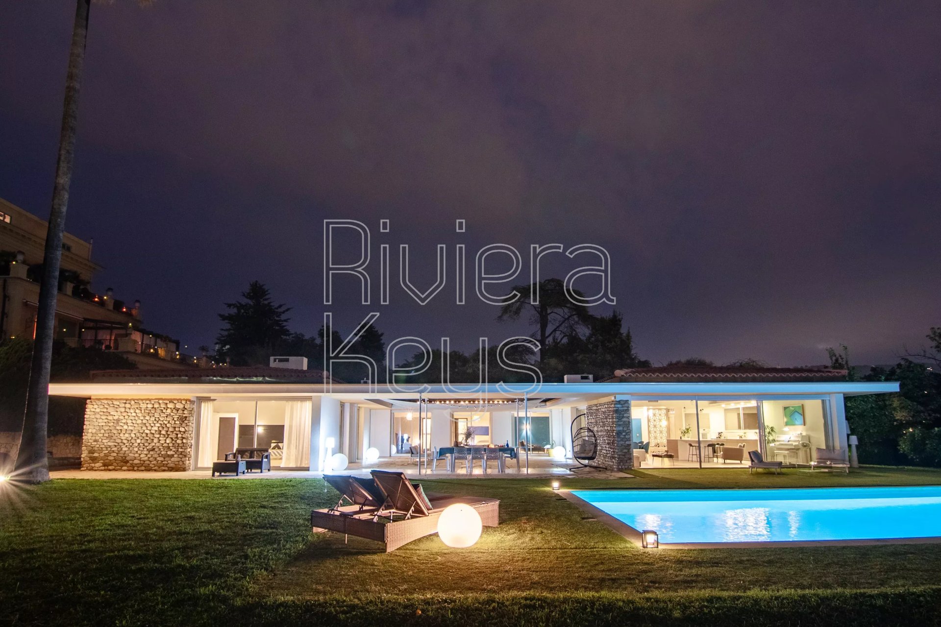 La villa bénéficie également d'un extérieur remarquable. Le parc paysager accueille une superbe piscine, de vastes espaces de détente ainsi qu'un grand garage.