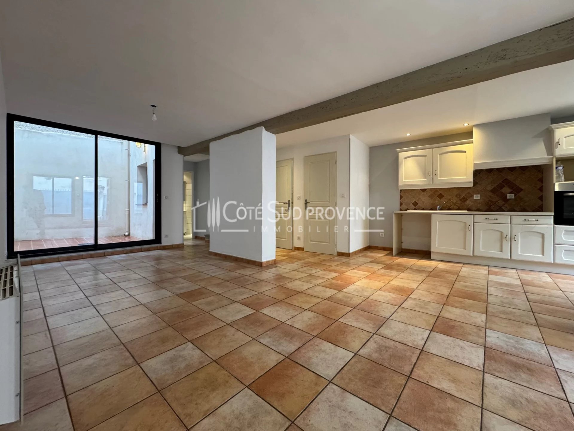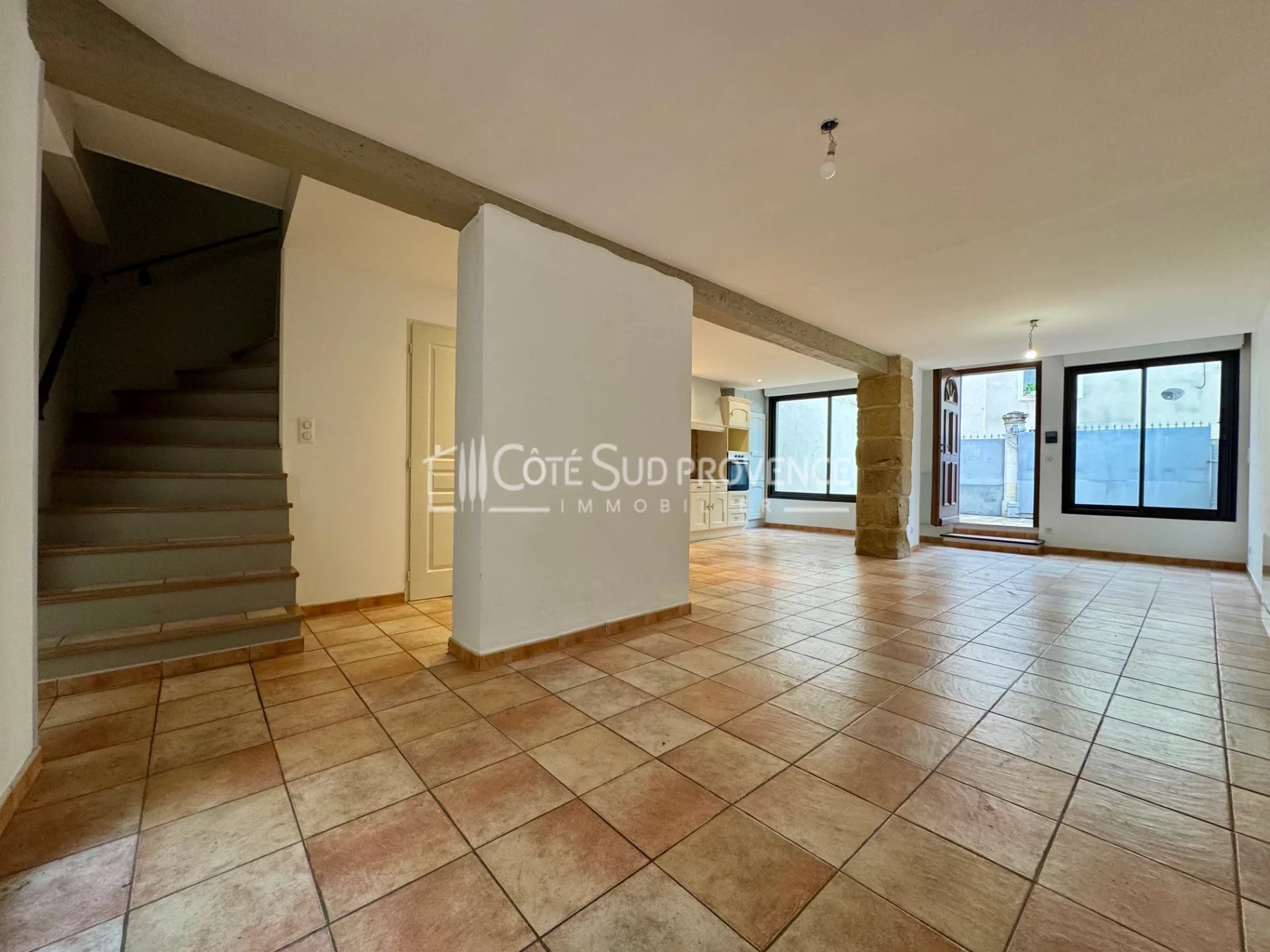 A 30 mn d'Avignon TGV, au calme, Maison de ville d'environ 97 m² avec cour intérieure, balcon et espace parking. Grand séjour salon, cuisine équipée, salle d'eau, wc indépendant, cellier, grand palier, 3 chambres avec placards, salle d'eau et wc indépendant. Menuiseries p.v.c en double vitrage avec volets roulants automatisés, chauffage électrique par radiateurs. Propriété en centre ville entretenue proche de toutes les commodités à pied.