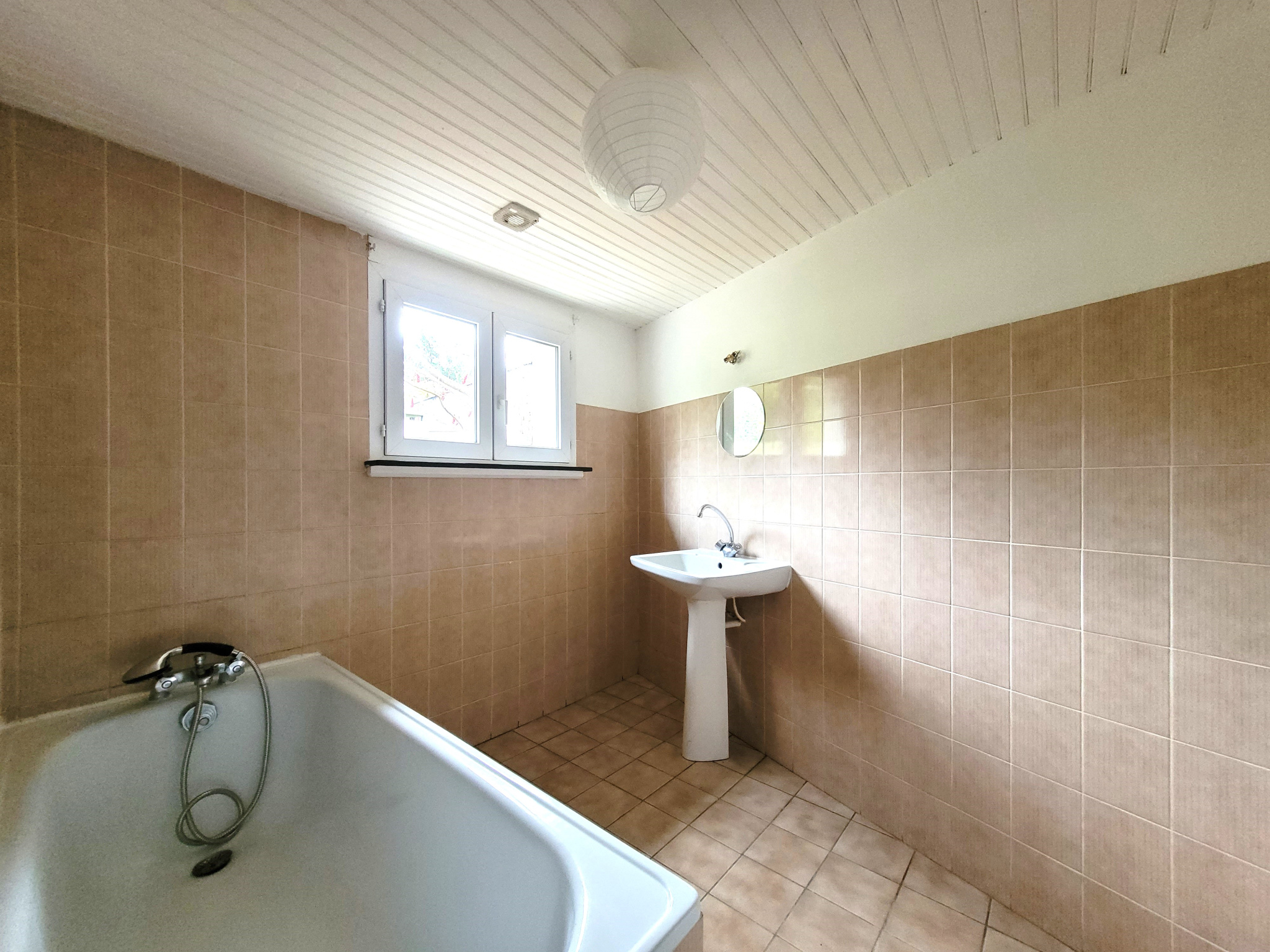 La maison se compose au rez de chaussée d'un séjour, d'un salon, d'une cuisine à aménager, un WC, une salle de bains.