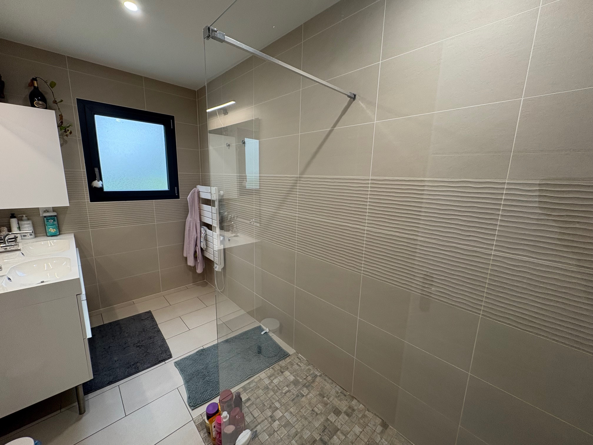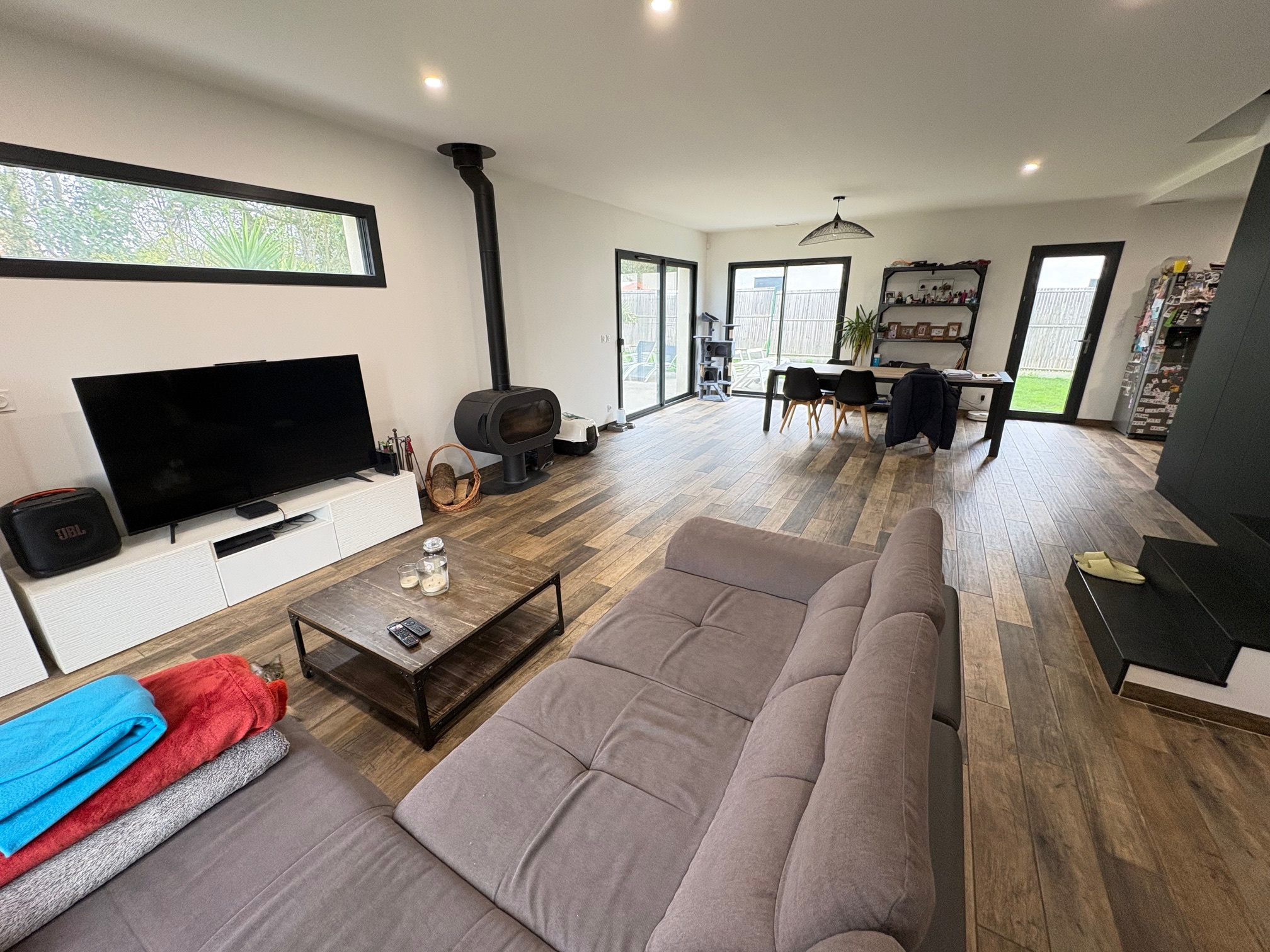 INTEGRAL IMMOBILIER : 05.61.40.03.02 - O6.82.73.55.60. Toulouse 31100, Saint Simon (proximité immédiate de THALES et Francazal), une maison individuelle à étage T4 sur 500m2 de terrain. Construction traditionnelle briques, sur vide sanitaire, année 2021, suivant dernières normes (cumulus thermodynamique, gainable réversible, poêle à bois, menuiseries Alu...). Composition : entrée, wc, salon séjour de 46m2, cuisine équipée, garage carrelé isolé. Au 1er : dégagement, wc, salle de bains, et trois chambres avec placards. Autres atouts : volets roulants centralisés, portail auto, environnement arboré, alarme, raccordement fibre, et transports en commun. Villes proches : Cugnaux, Villeneuve Tolosane, Colomiers, Frouzins, Tournefeuille, Roques, Portet sur Garonne... 'Les informations sur les risques auxquels ce bien est exposé sont disponibles sur le site Géorisques http://www.georisques.gouv.fr'. 06.82.73.55.60.